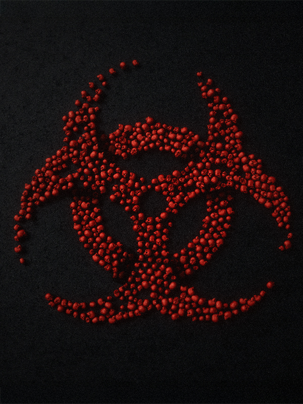 The video, paired with the looping, ambient sounds of the infected and occasional snippets of the “Boots” poem, featured 3D-crafted, individually animated red skulls. They dropped into the screen and gradually rolled into place over time, eventually creating the full biohazard symbol made entirely out of skulls by the time the full 28 hours had elapsed.