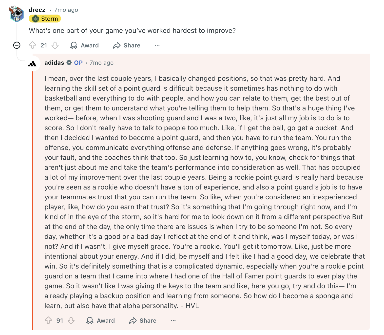 - Capture AMA answers in a way that could be quickly repurposed across Reddit and Adidas channels without losing the raw, community‑first tone