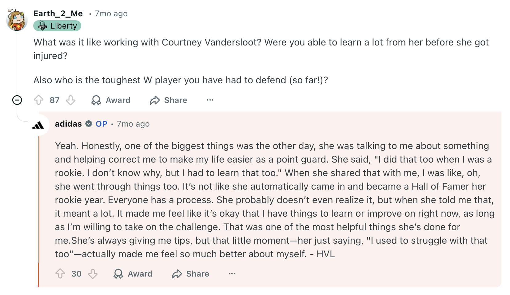 Adidas and Reddit partnered to flip that script with the Hailey Van Lith (aka “HVL”) Ask Me Anything.