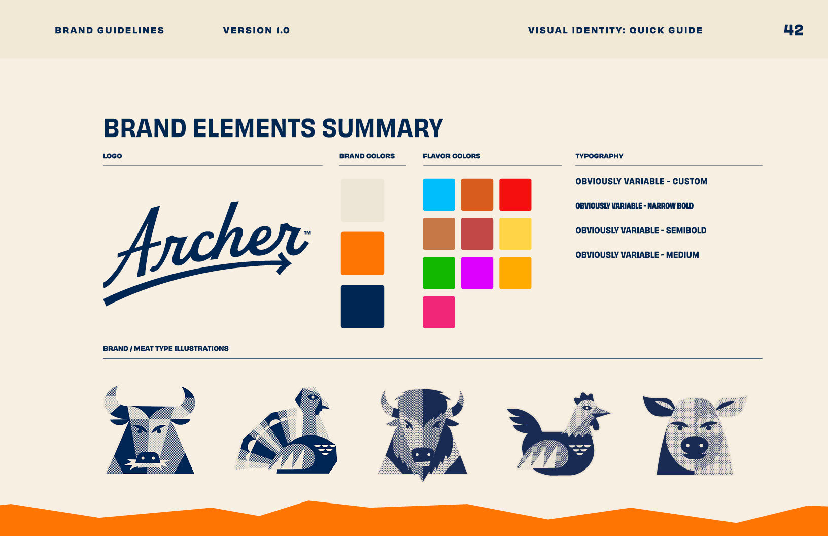 A newly introduced bull icon embodies Archer’s authentic, expressive confidence, heroizing the brand on package with unmistakable conviction. The bold graphic style reinforces Archer’s unflinching quality and expands across all SKUs, including turkey, chicken, pork, and bison. In keeping with this boldness, the new wordmark builds on Archer’s heritage, refining it with taller, forward leaning letterforms. Thick, vibrant, and dynamic, our new font’s variable widths allow adaptive flexibility while retaining legible simplicity.