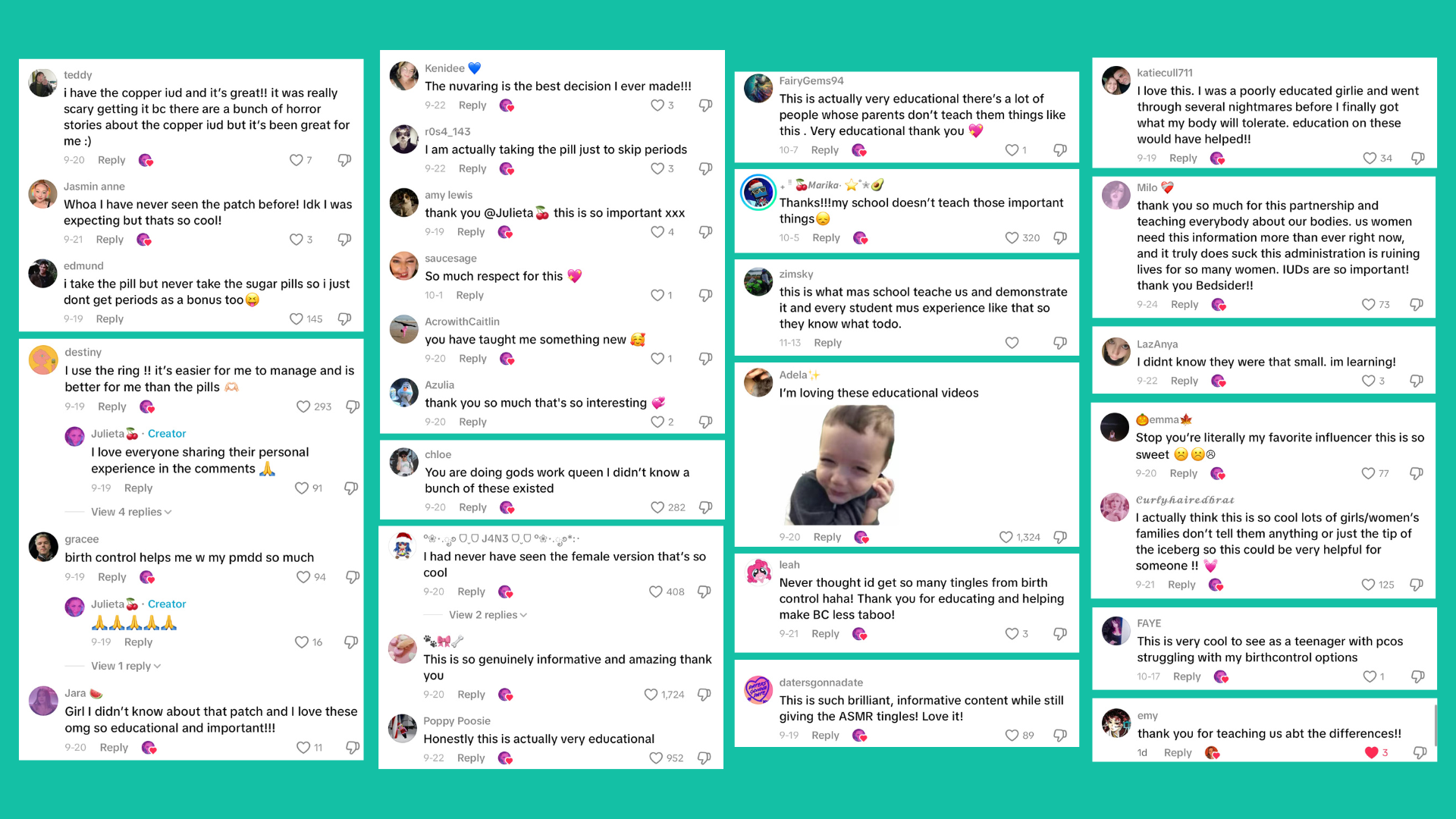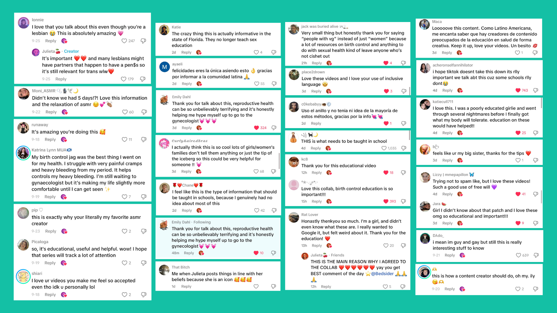The comment section became its own measure of success. Thousands of viewers shared relief, gratitude, and excitement at finding sexual health information that felt relatable, accessible, and shame-free. A few examples: