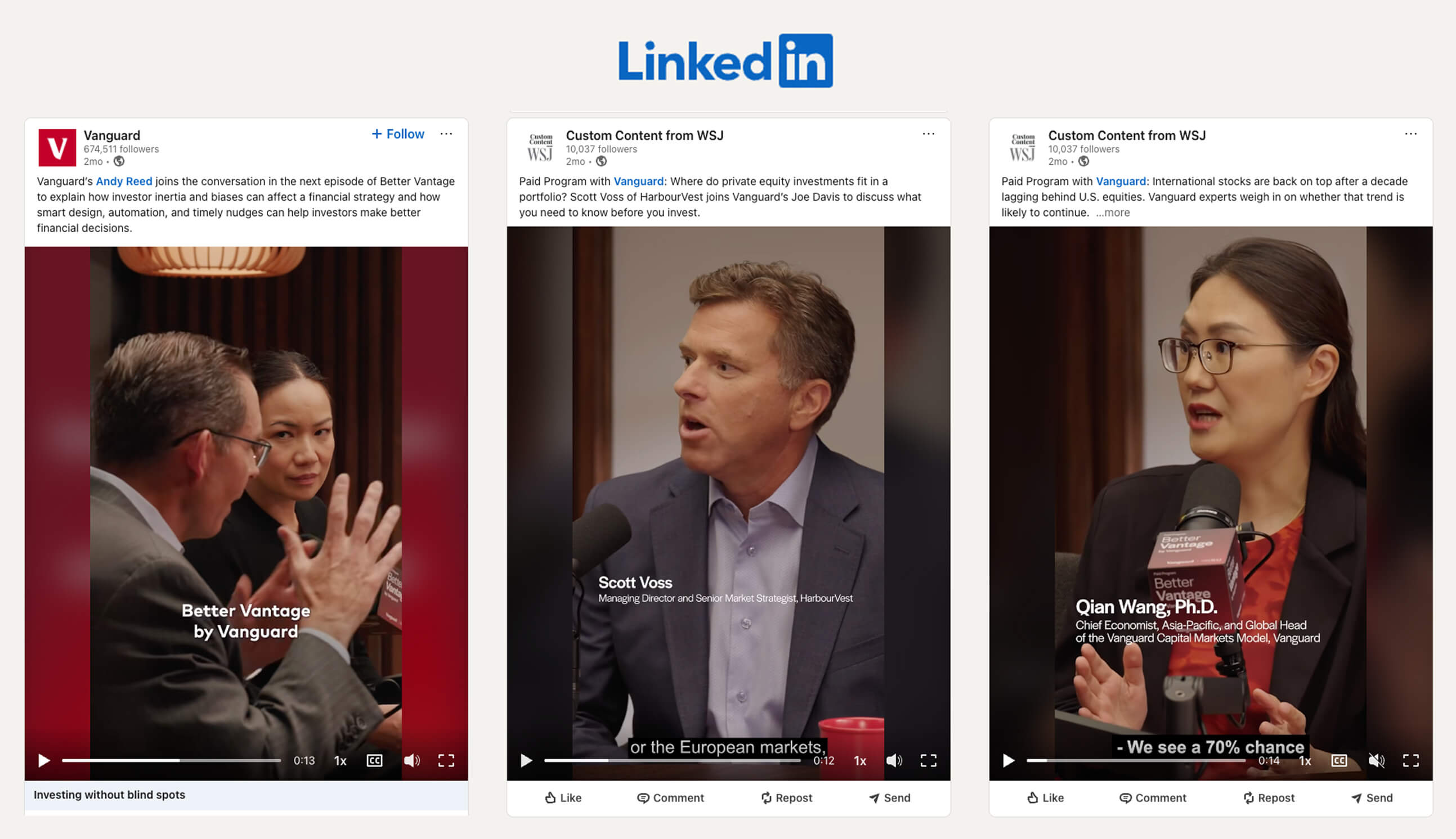 To reinforce trust and credibility, each episode featured Joe Davis, Vanguard’s Global Chief Economist and Global Head of the Investment Strategy Group, as the series anchor, alongside Christine Kashkari of WSJ Custom Programming. Together with expert guests, they unpacked real-time market shifts, from inflation and geopolitical uncertainty to AI-driven growth cycles. This structure kept the content timely, authoritative, and deeply relevant to sophisticated investors, advisors, and institutions.