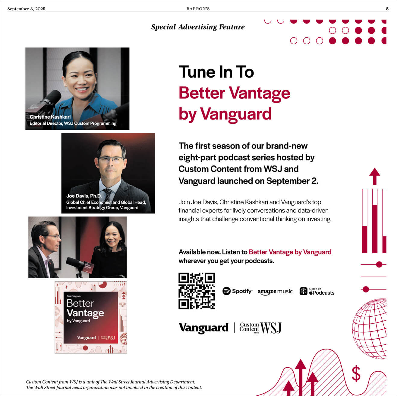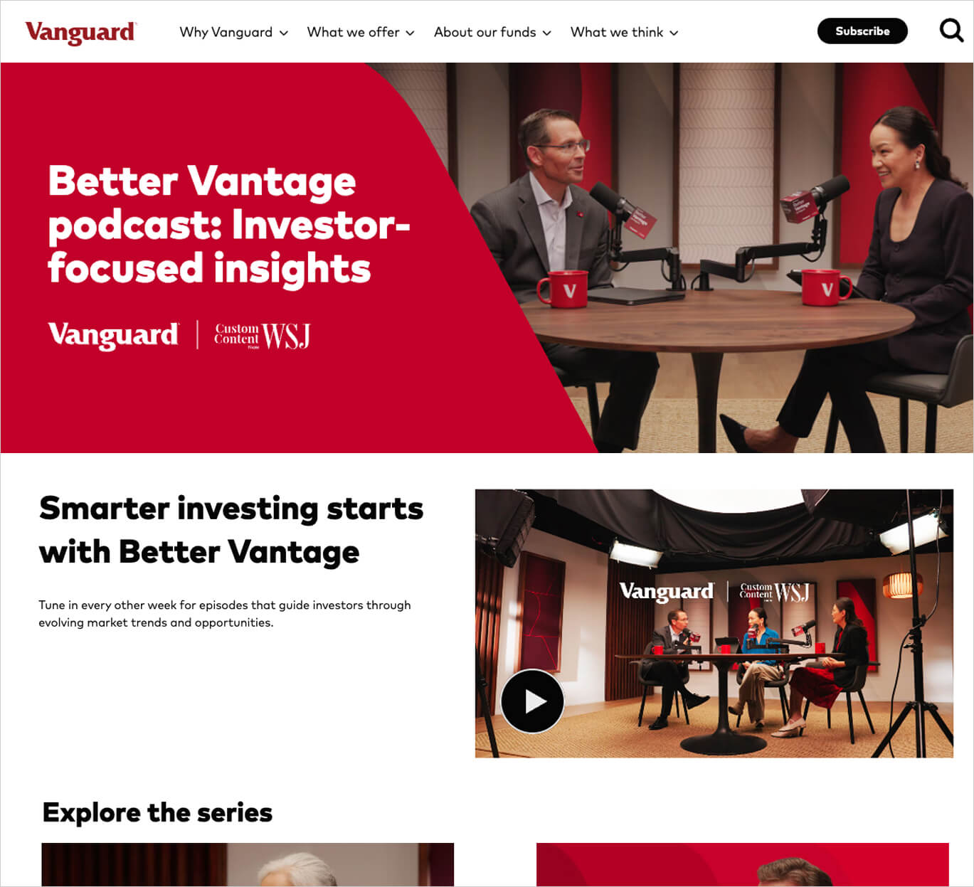 At a moment marked by market volatility, economic uncertainty, and reactive investor behavior, Vanguard identified a critical gap between financial headlines and confident investing. This insight inspired Custom Content from WSJ, in partnership with Vanguard, to create Better Vantage by Vanguard, a groundbreaking eight-part audio and video podcast series designed to bridge that divide.