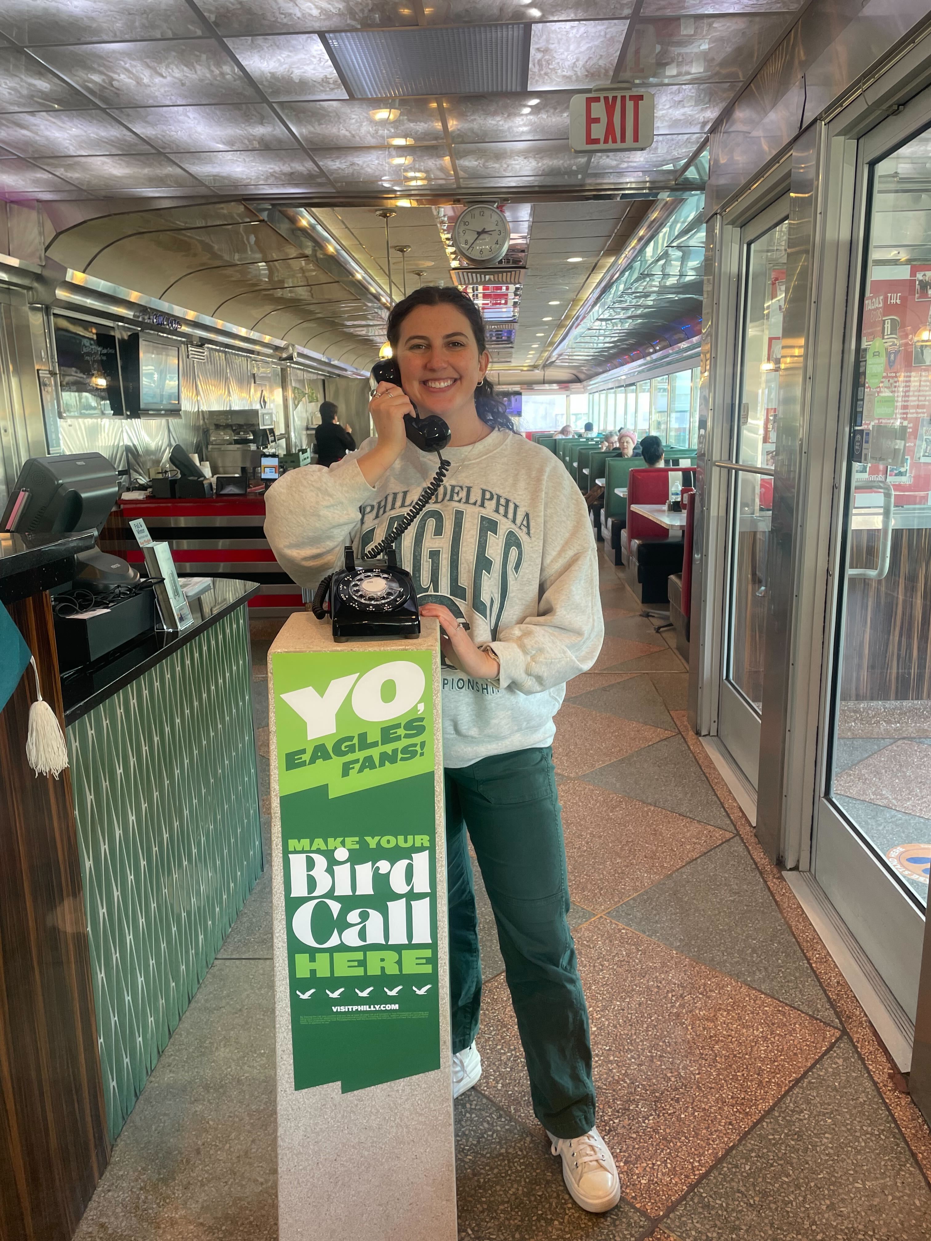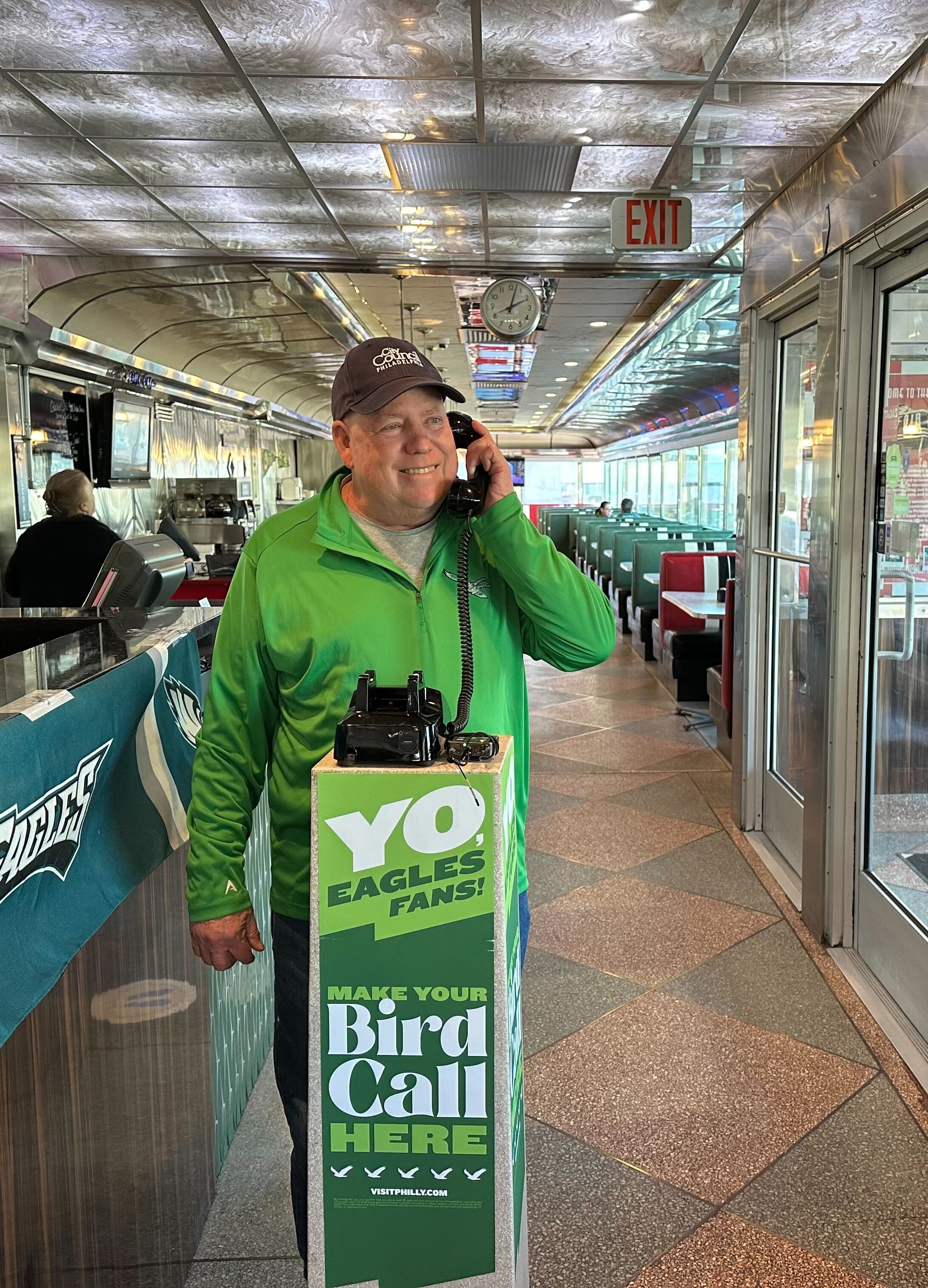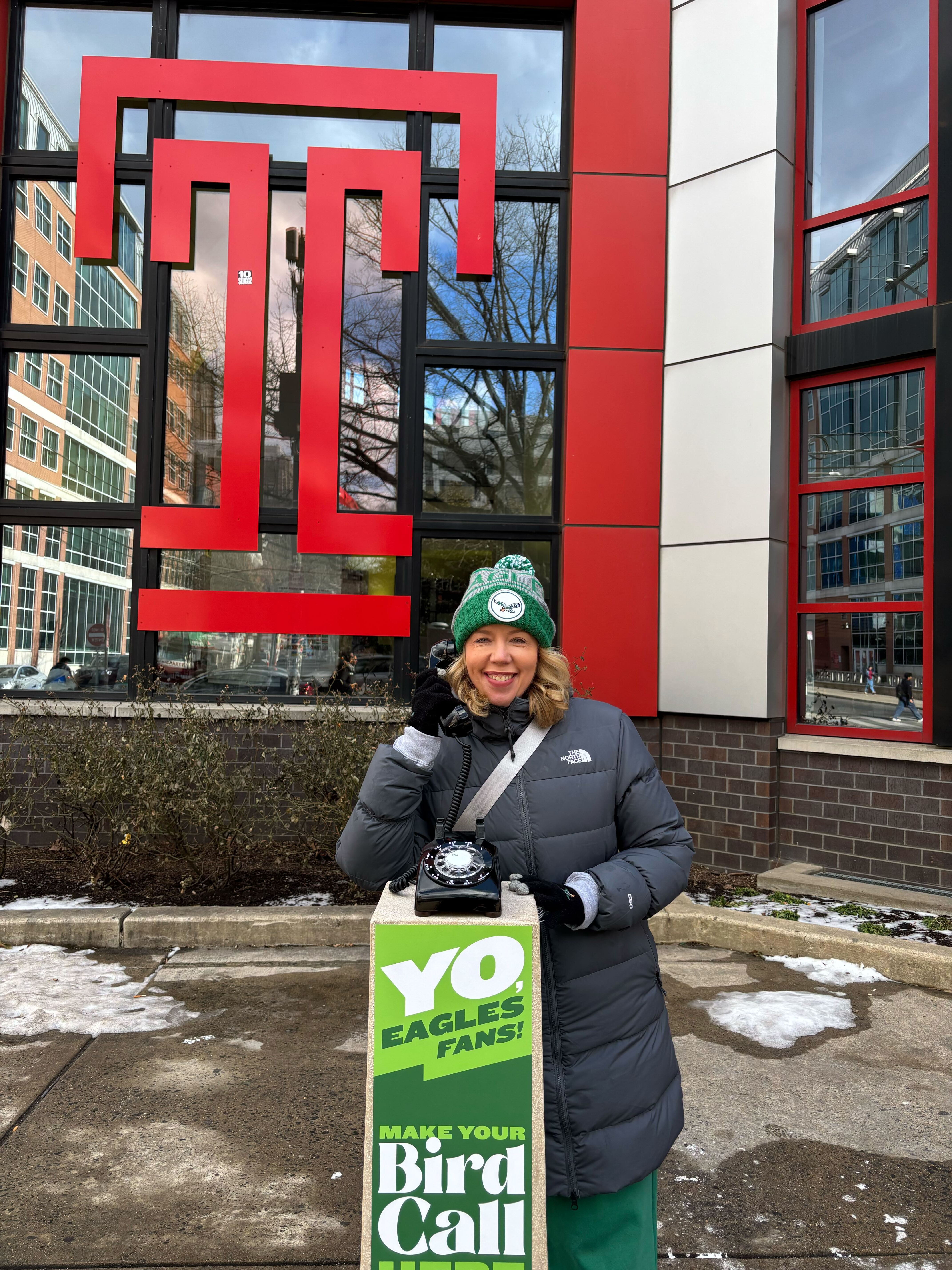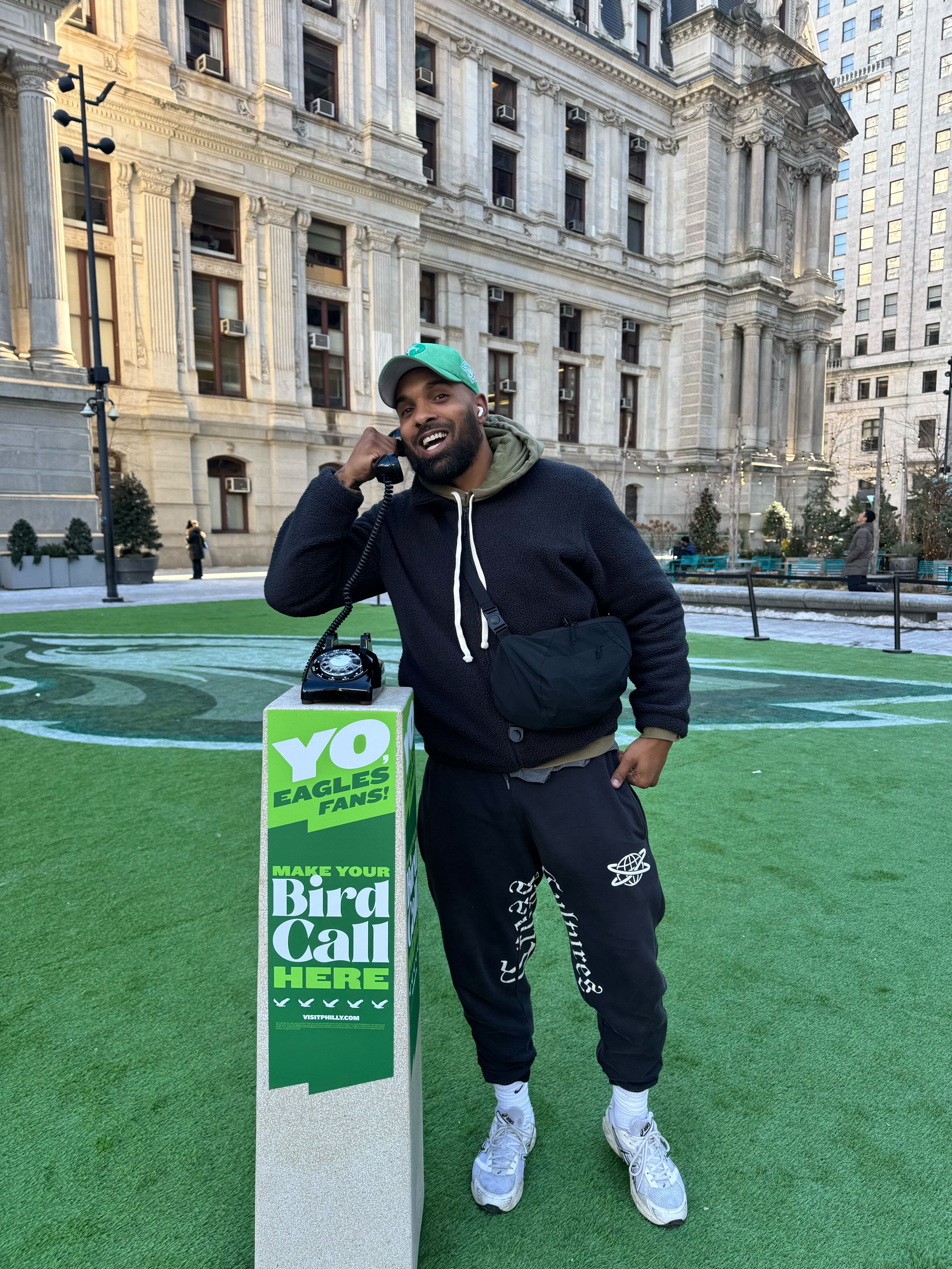 Each phone sat on a pedestal with a simple invitation: “Yo, Eagles fans! Make your Bird Call. Leave a message for the Eagles on their road to victory.”