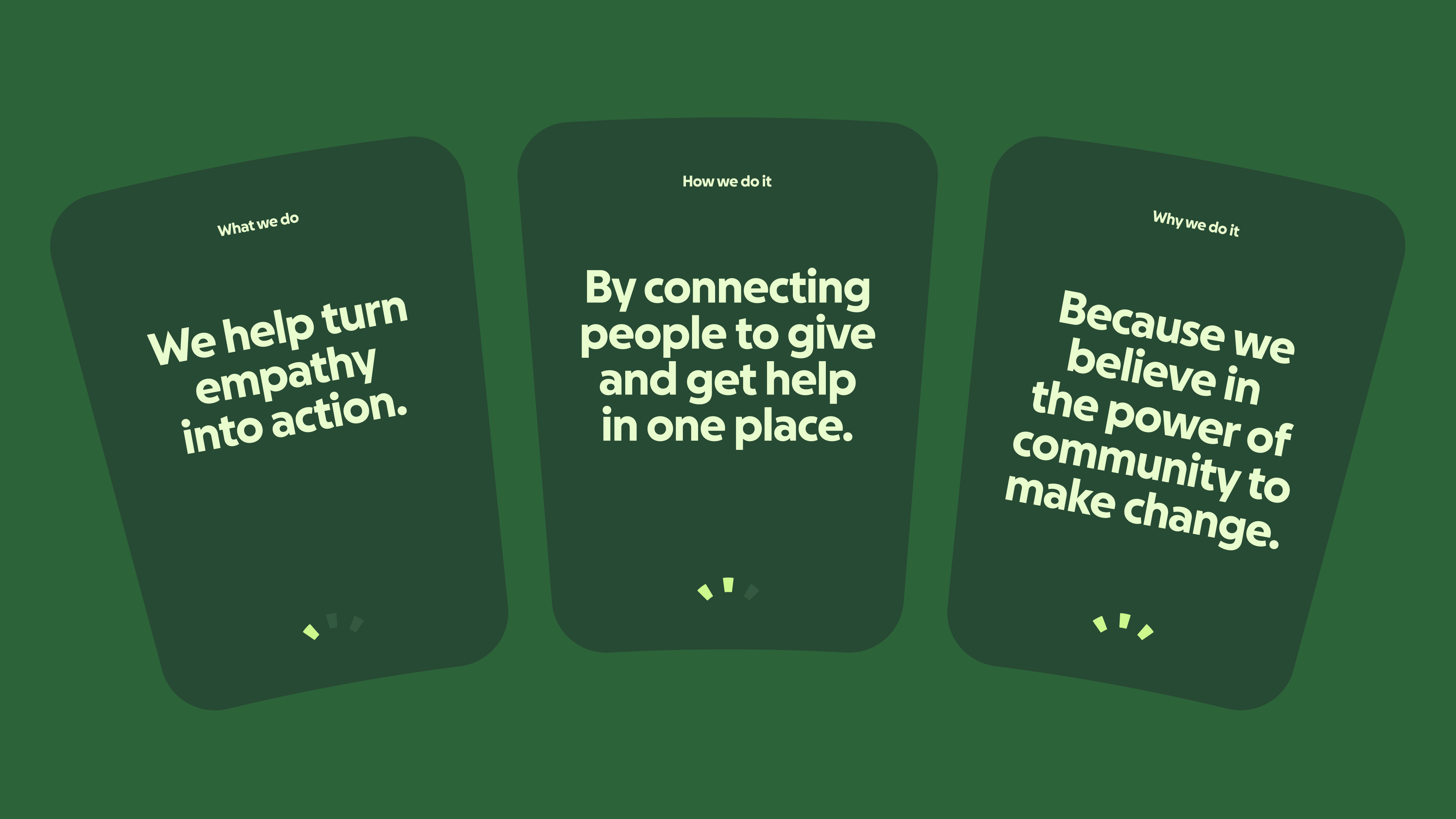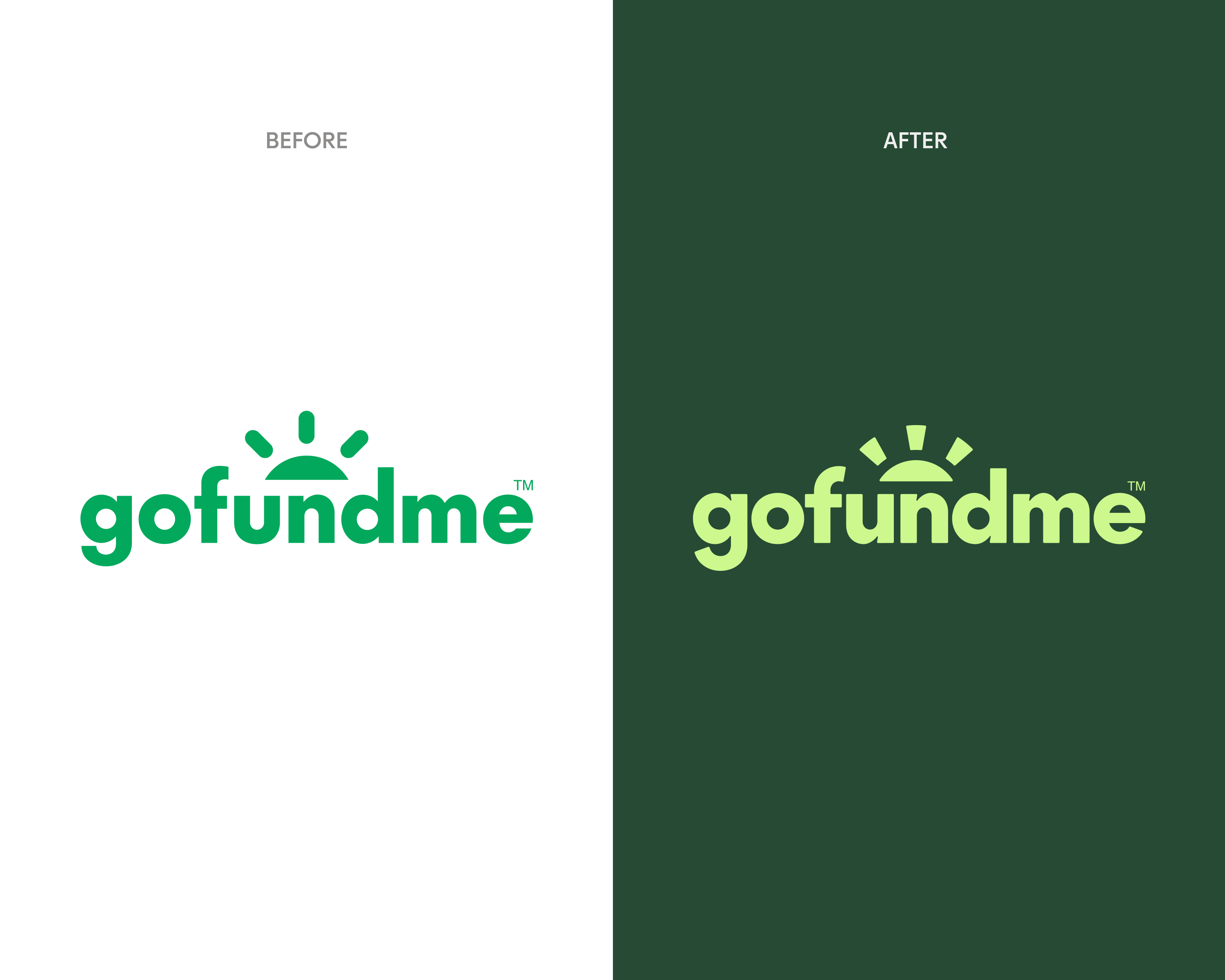 Color became more vibrant but remained rooted in green, a nod to GoFundMe’s grassroots origins. Supporting hues expanded the palette into a hopeful spectrum – bringing trust, optimism, compassion, and dignity with a duotone approach that offers far greater legibility and accessibility.