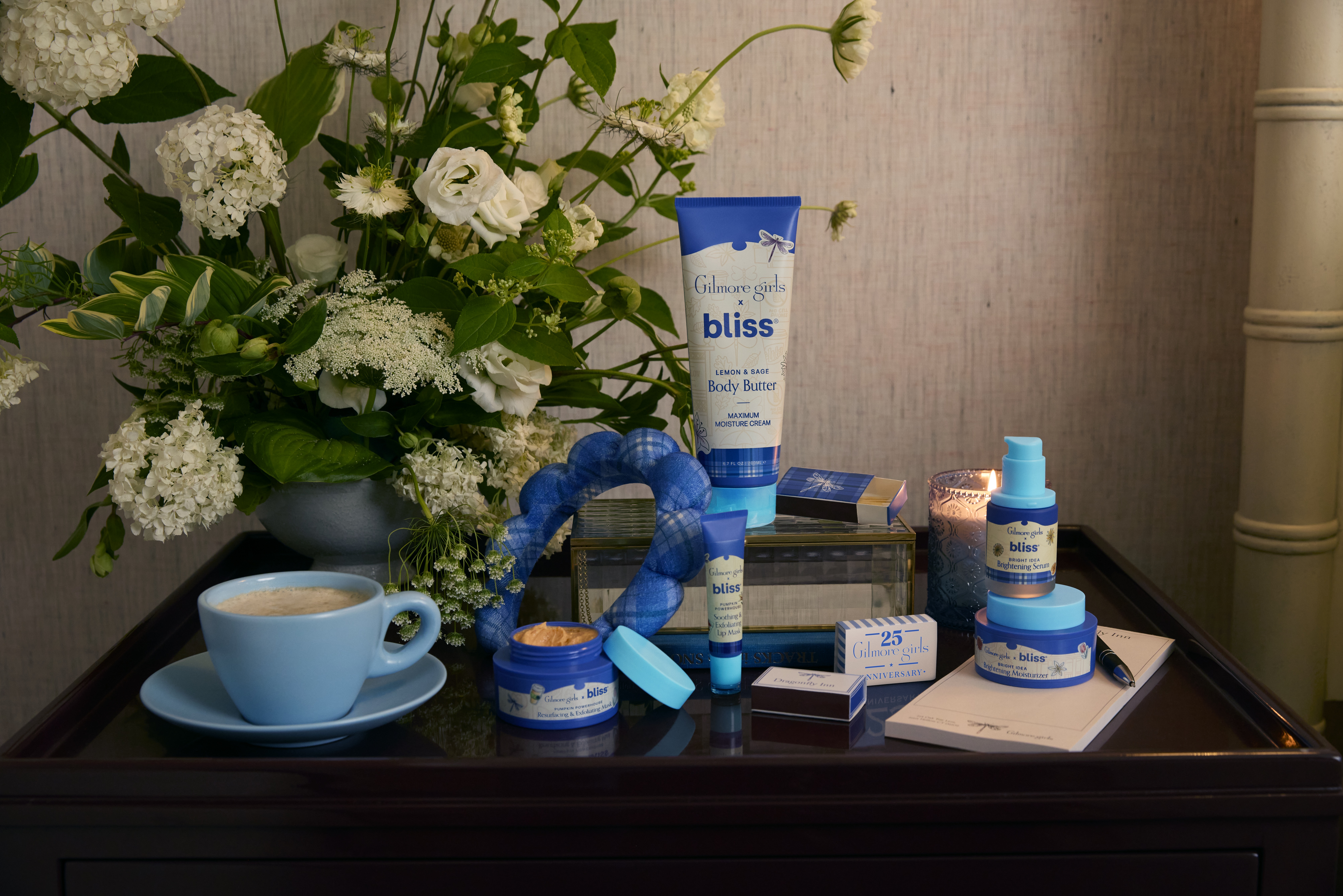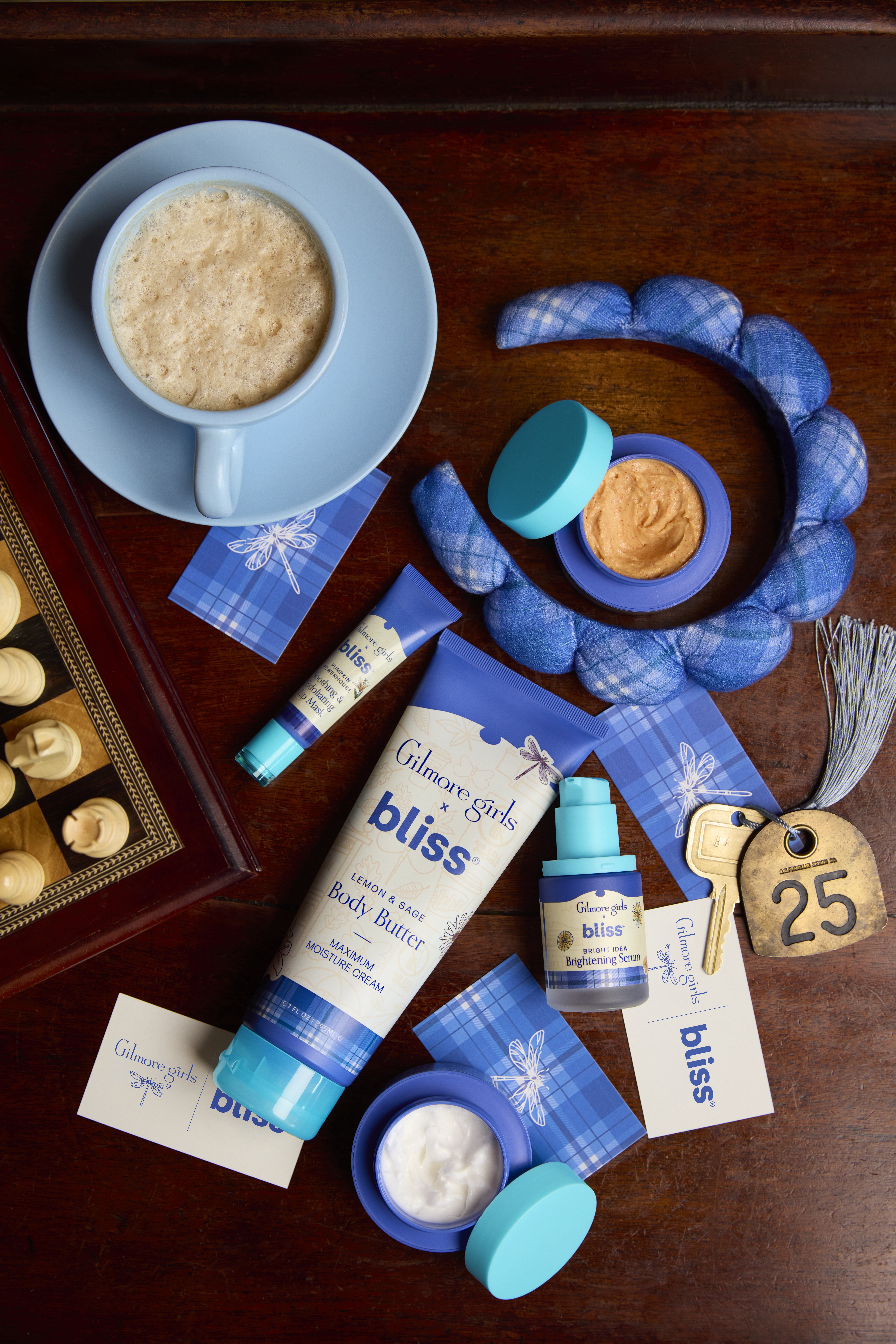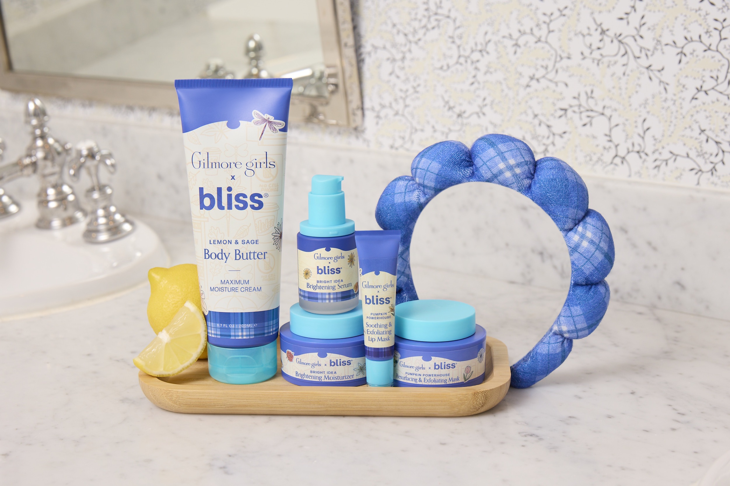The limited-edition Gilmore Girls x Bliss collection featured six of Bliss’s most sought-after products, each packaged in the show’s signature Chilton-inspired plaid, including the Lemon & Sage Body Butter, Pumpkin Powerhouse Face and Lip Mask, Vitamin C Serum and Moisturizer, and a Spa Headband.