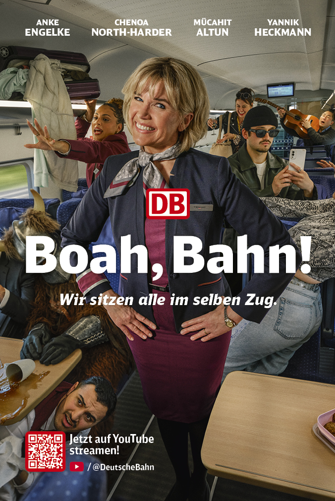 Boah, Bahn! exceeded campaign objectives by modernizing Deutsche Bahn’s brand in an authentic and humorous way. Instead of traditional advertising, the series told real stories from train staff, filmed on a moving train, navigating the daily challenges of railway life, reaching passengers directly during their journeys. Waiting time became entertaining, relatable, and relevant for all age groups.