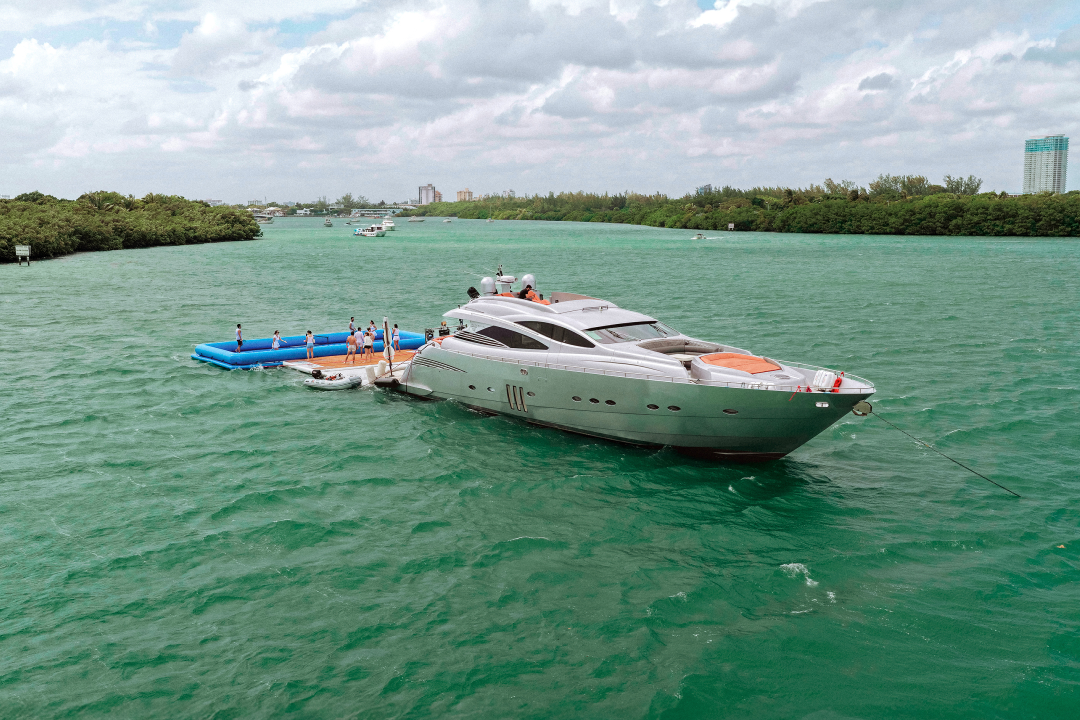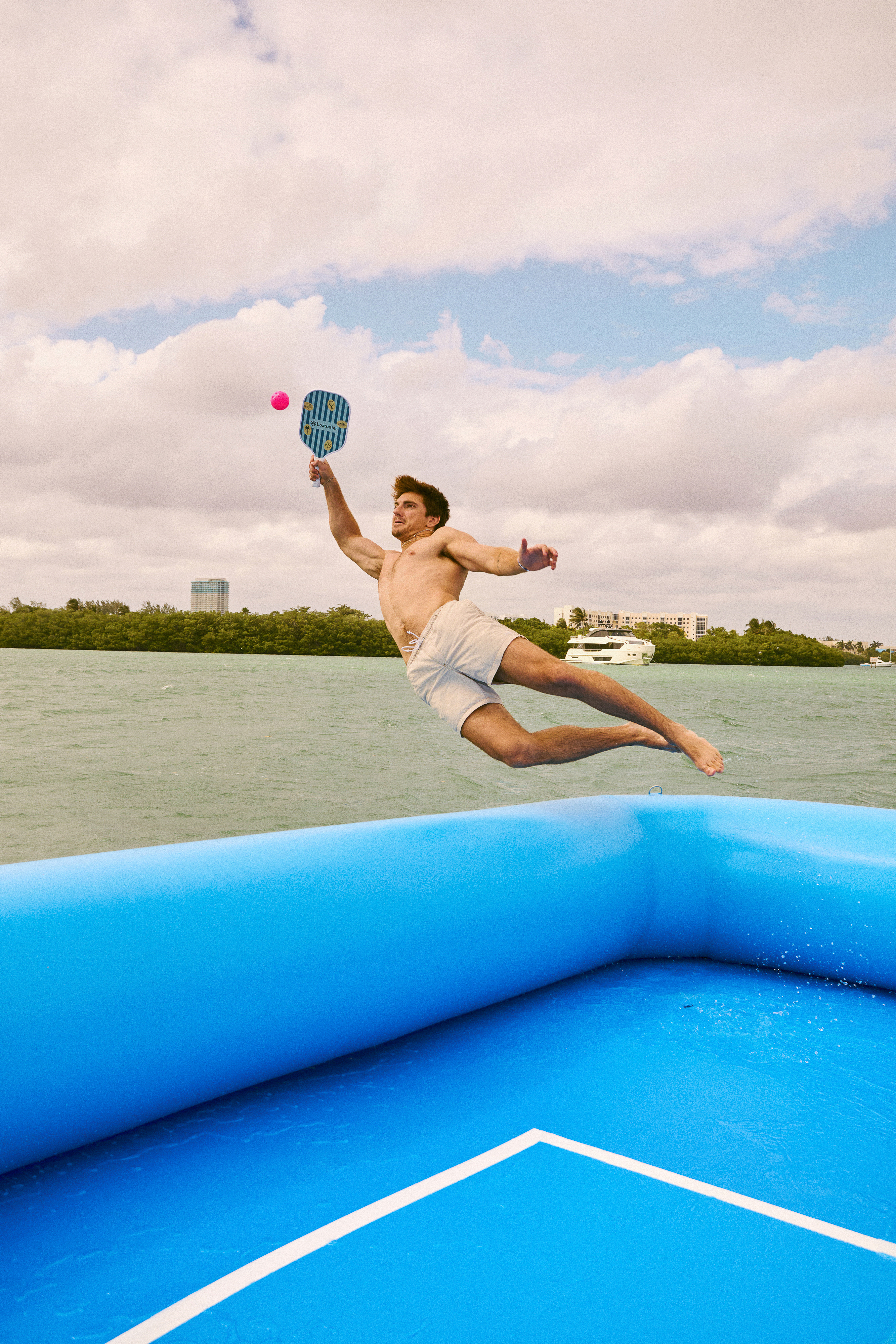 Anchored off the coast of Miami, the custom floating court debuted alongside one of Boatsetter's standout vessels, The Jerico. Boatsetter partnered with Jason, a Top Owner, with a crew known for its high-end service and passion for inflatables including their iconic floating water park. The activation captures everything people love about a day on the water in Miami easy, unique, and full of movement.