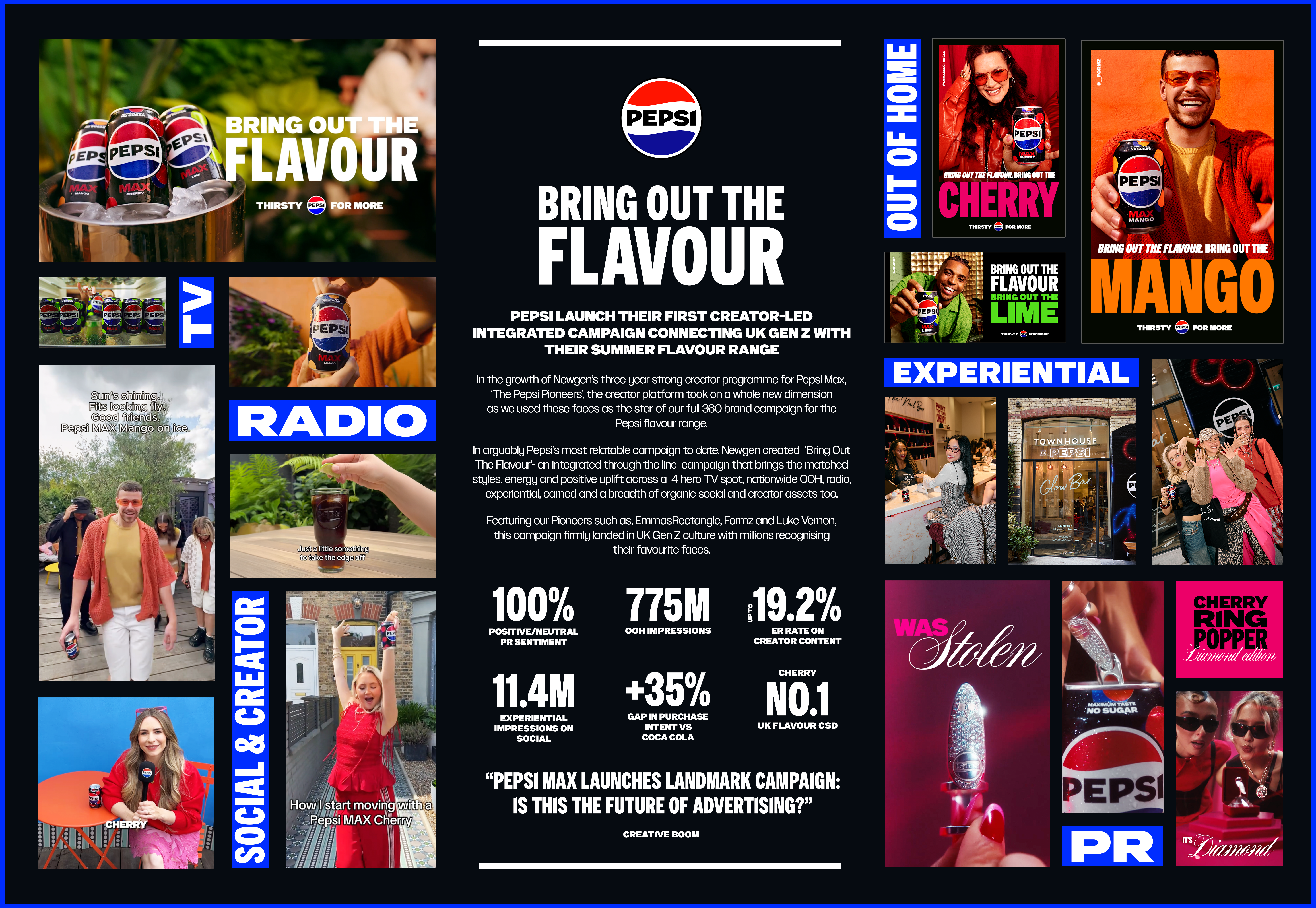 By giving creators real influence, not just airtime, Pepsi MAX flavours rebuilt relevance, outperformed its biggest competitor and re-established itself as a brand shaping culture, not reacting to it and has shaken up the integrated landscape.