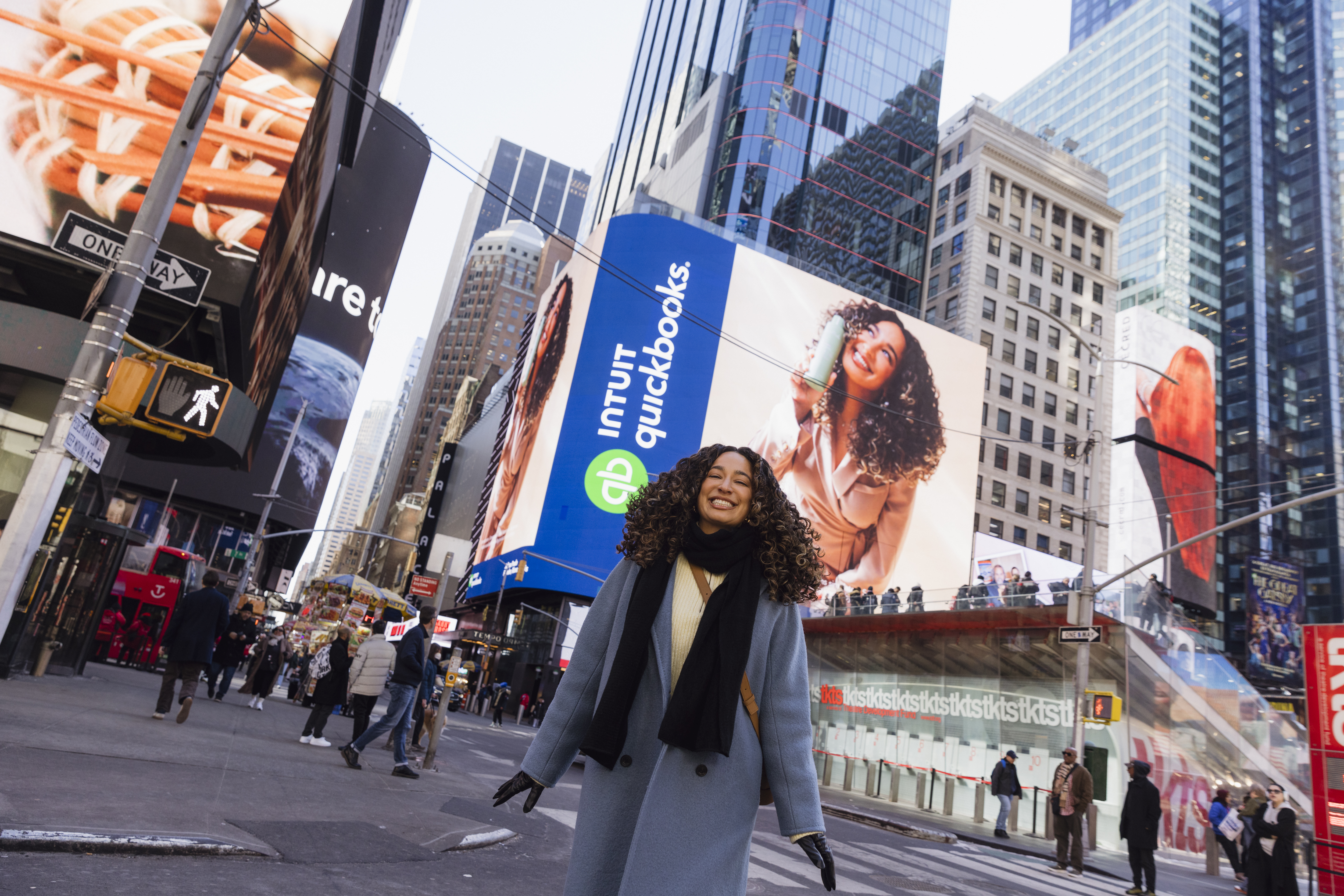 What made the execution distinctive was how deeply creator stories were embedded across the large media ecosystem. Creator content appeared on their own channels, as well as across QuickBooks social, a national television spot, owned channels, and even a Times Square billboard. The Curls TV commercial featuring Julissa Prado, founder and CEO of Rizos Curls, and a Times Square activation with Julissa and chef-entrepreneur Joe Sasto, turned individual creator stories into high-impact, culturally visible moments.