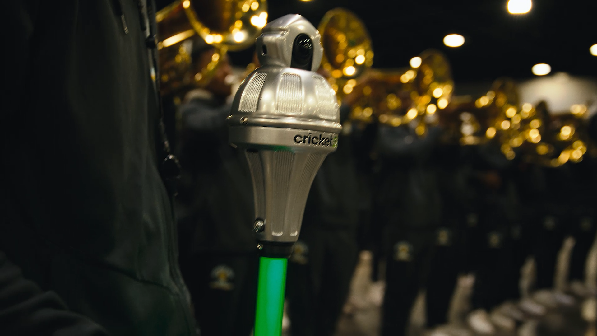 On-Site Activation: Fans on the concourse interacted with the mace and shared their own POV and experiences. Both championship marching bands performed with it during the Jamboree, its 5G-powered camera capturing every moment from the drum major's perspective. The physical presence fueled the digital content, and the Cricket 5G digital content extended the physical experience.