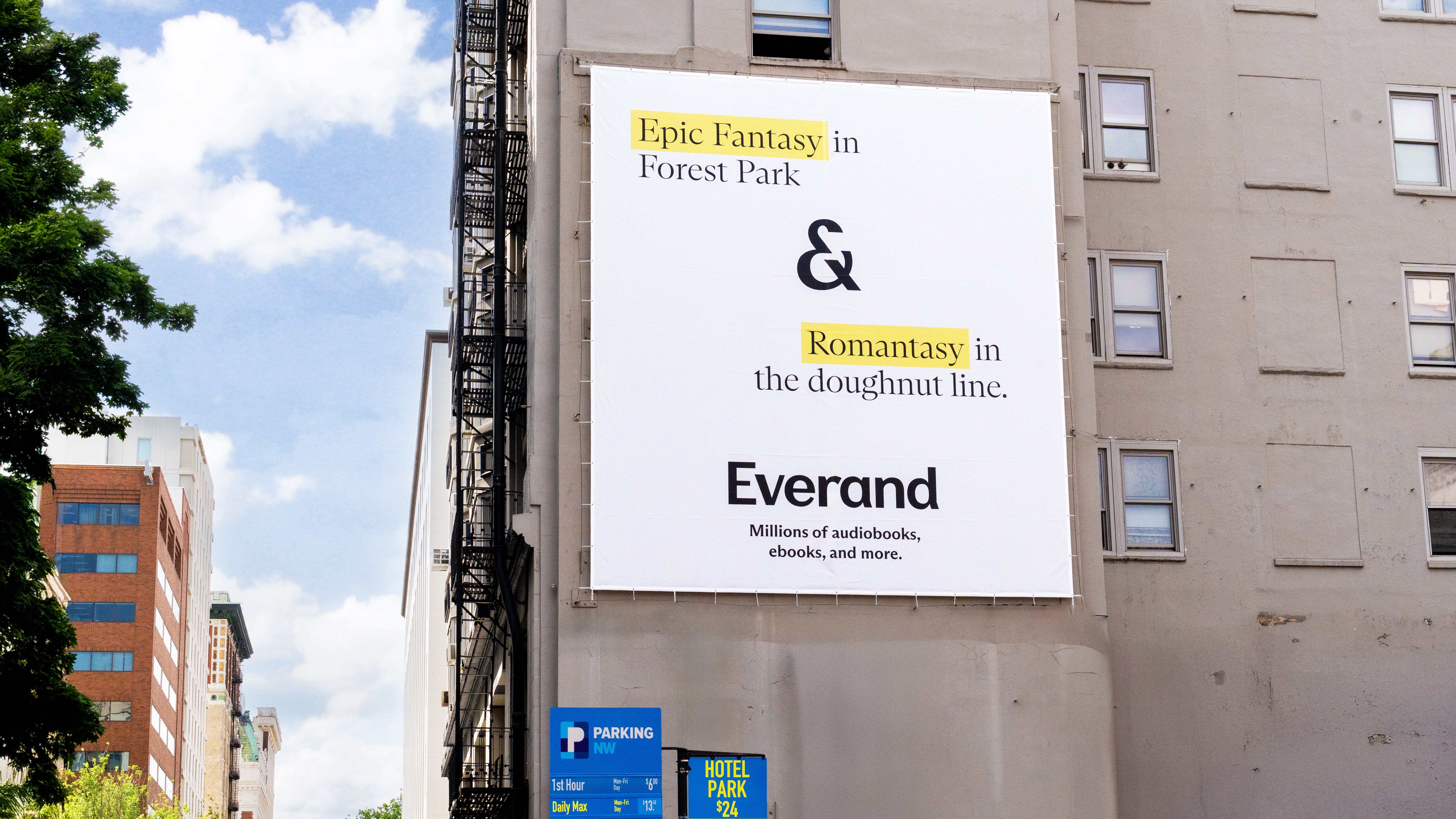The campaign extended Everand’s community-driven ethos into physical spaces, encouraging people to celebrate the many ways they engage with stories. Bright yellow visuals and our ampersand logo unified the campaign across every surface.