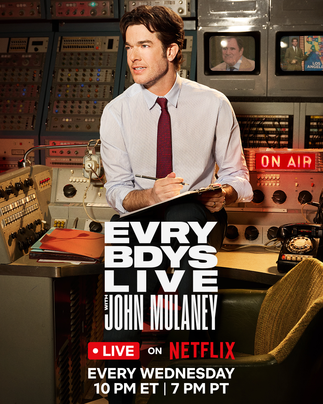 John Mulaney invites viewers into his world. Everybody’s Live with John Mulaney (Wednesdays at 10p ET) breaks all talk show molds: live/not pre-taped, guests are not on promo tours, includes live calls, and goes wherever John’s curiosity takes him. Everybody’s Live has guaranteed spontaneity, unexpected moments, and surprise guests – all curated by John Mulaney.