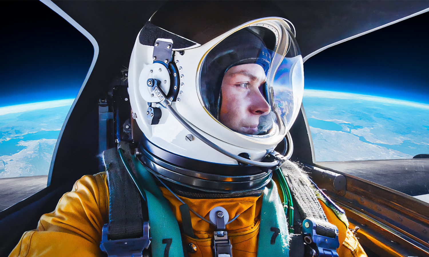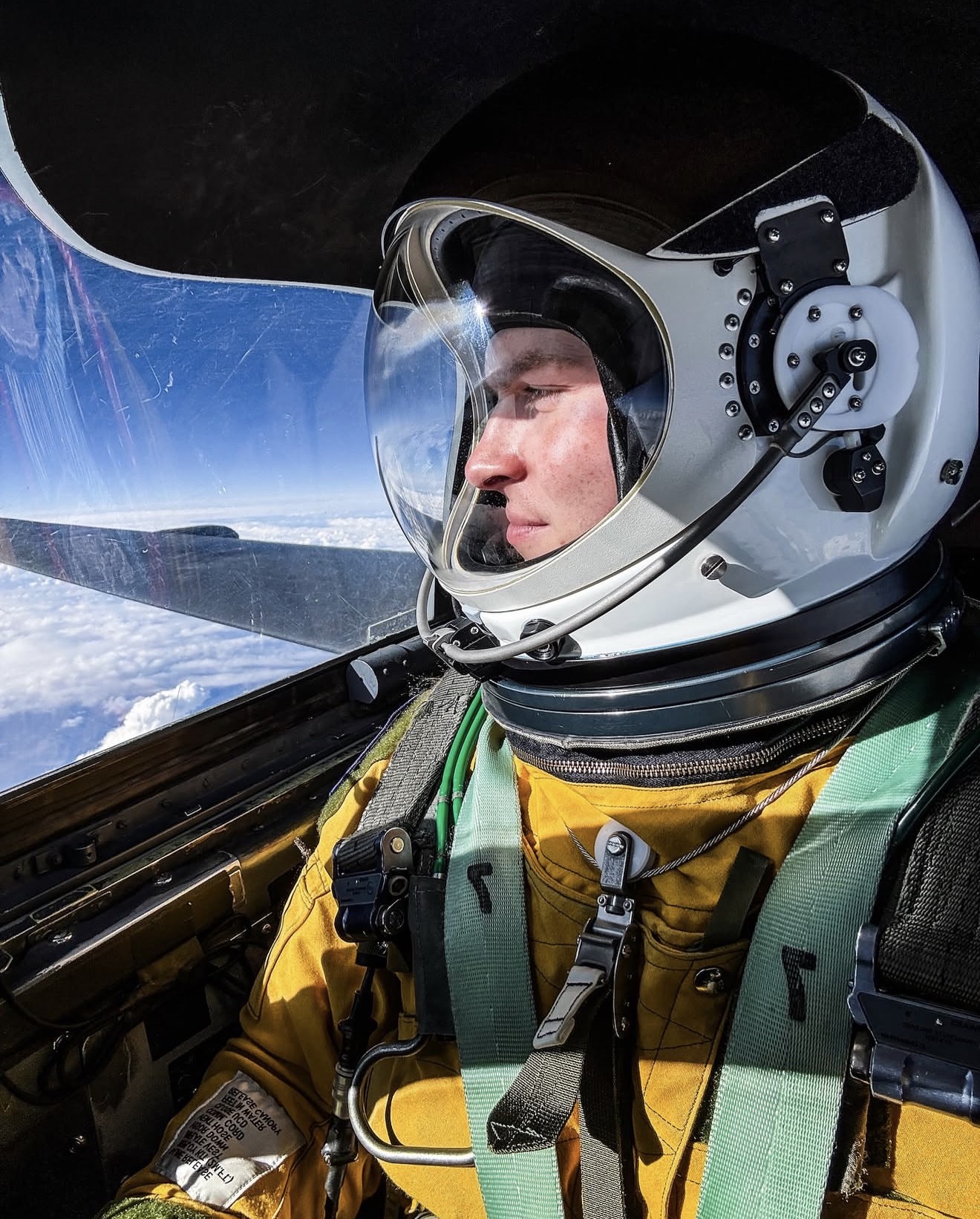 Beyond production complexity, Sam was required to meet the same physical and procedural standards as U-2 pilots. Preparation included two days of specialized training: fitting a full pressure suit, operating in an oxygen chamber, and completing emergency and physiological readiness protocols. Filming while wearing gloves, a helmet, and a pressurized flight suit added another layer of difficulty, requiring precise choreography between script, camera operation, and mission demands. To stay on track and execute a carefully planned script, our team had to get creative. A sheet of filming scenes and talking points was printed and laminated for dexterity in such challenging filming conditions. This allowed Sam to use a physical asset to assist with storytelling at the edge of space, when he had no access to electronic devices.