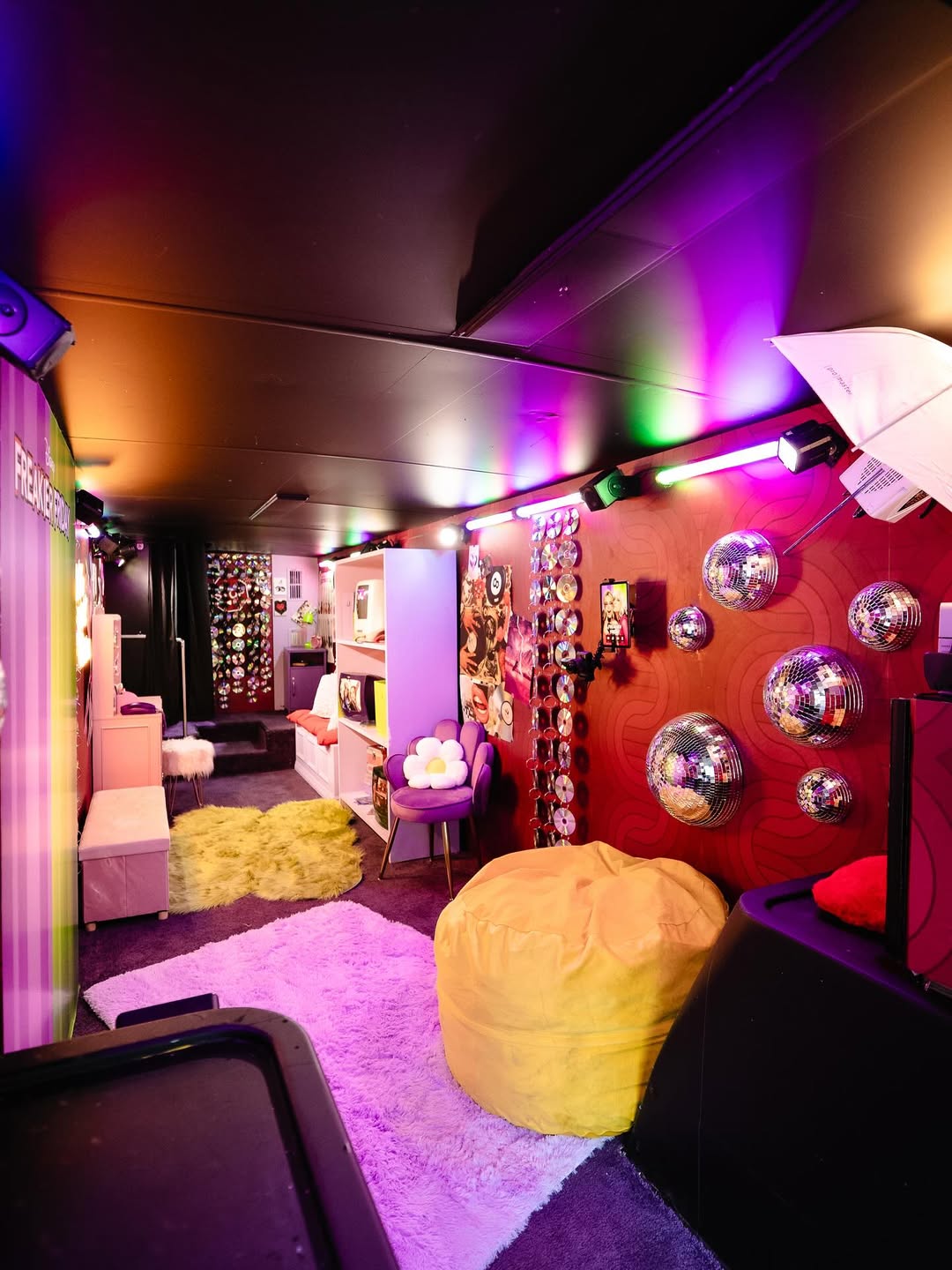 Our vision was a tour bus themed inside and out to Freakier Friday that would make several stops throughout LA over the course of two days. To make this a once-in-a-lifetime experience, not only did we curate the bus tour stops based on the real locations in the film, we also surprised the creators with talent appearances at the locations that related to their characters: The Record Parlour with Chad Michael Murray, Openaire with Manny Jacinto, Echo Park Swan Boats with Julia Butters and Sophia Hammons, Palisades Beach with Jamie Lee Curtis, and lastly, the world premiere in Hollywood with Lindsay Lohan and the rest of the cast.