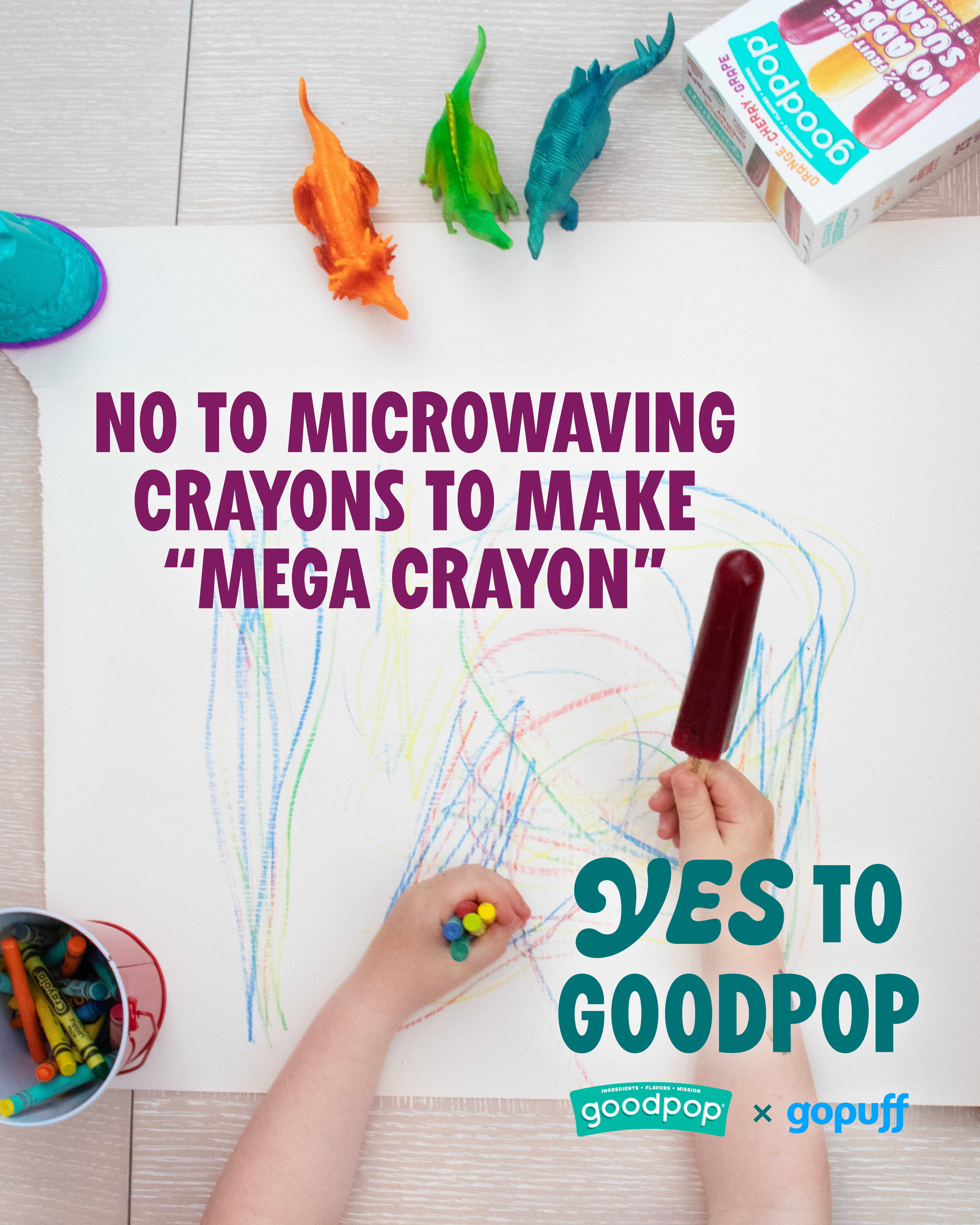 GoodPop’s objectives were to introduce simple ways for families to experience more positivity through clean-label frozen pops, spark a cultural conversation about the power of saying “yes,” and offer parents tangible tools and opportunities to create meaningful moments with their kids. The campaign was designed to meet families where they are — at home, online, and in their communities — while reinforcing GoodPop’s commitment to real ingredients, transparency, and joyful experiences.