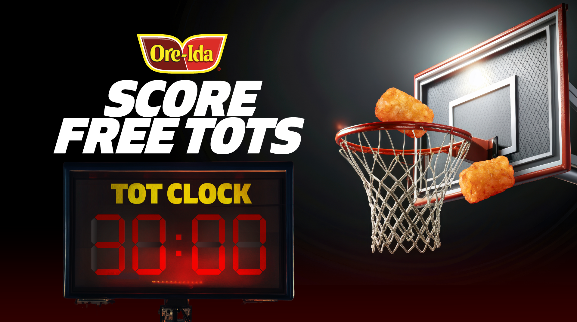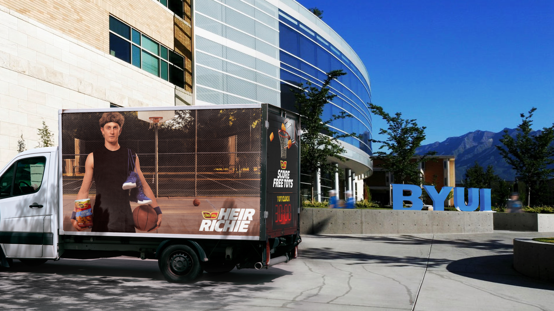 Within 48 hours, we signed Richie to an NIL deal and dubbed him “Heir Richie” - a play on “Air Jordan.” With Richie as the face of Ore-Ida, we fueled fandom by transforming the 30-second shot clock into a 30-minute “Tot Clock,” rewarding fans with free Tater Tots after every BYU win. We sustained momentum with real-time social content throughout the tournament, dropping sports-style Heir Richie memorabilia, custom Tater Tot bags, baking sheets, and fan-ready signage - ensuring Ore-Ida wasn’t just mentioned, but actively part of the conversation.