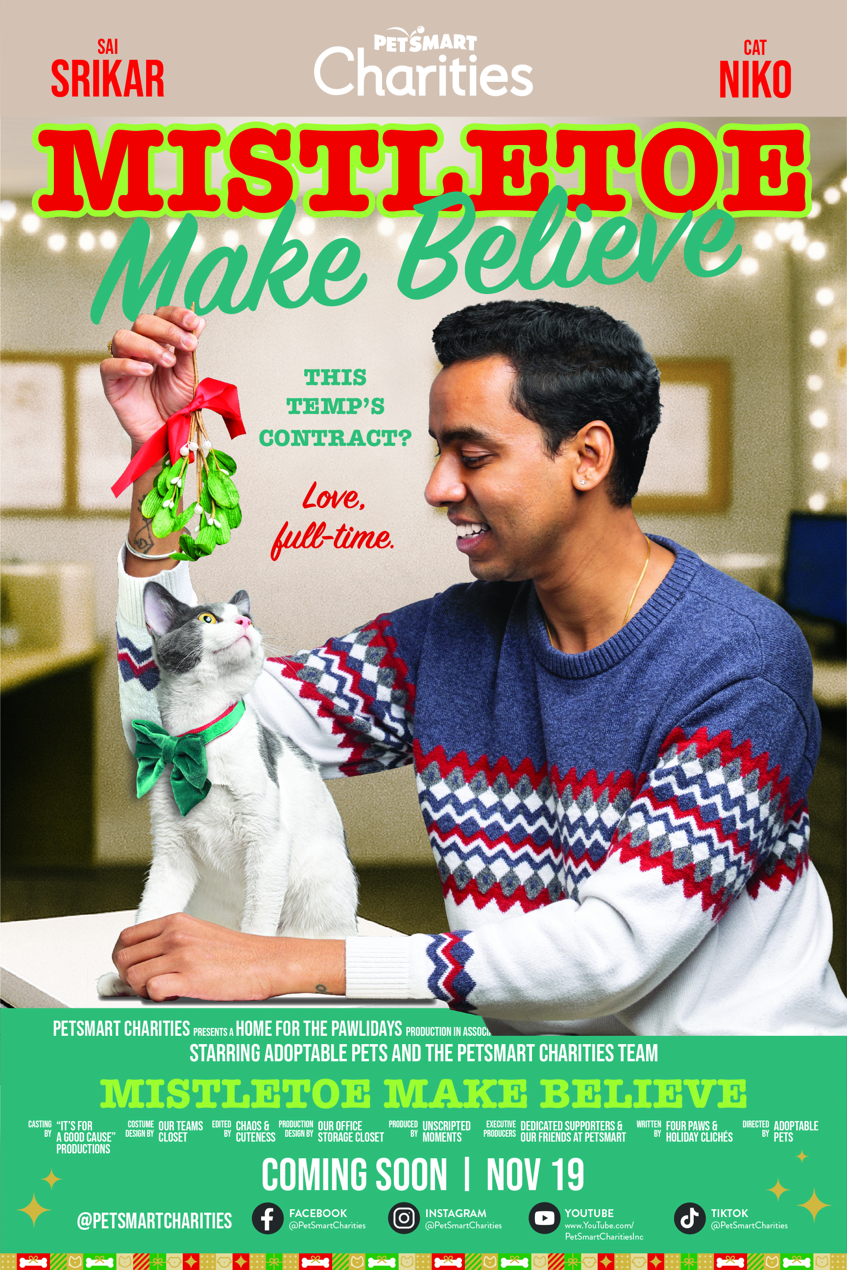 Home for the Pawlidays was inspired by the warm, cozy, and hopeful tone of holiday romance films. The idea was simple: remind viewers that the holiday love story they’re watching on screen is one they could create for themselves by adopting a pet. By framing real adoption journeys as cinematic, heartwarming stories, the series transformed real pets and adopters into the stars of their own holiday movies.
