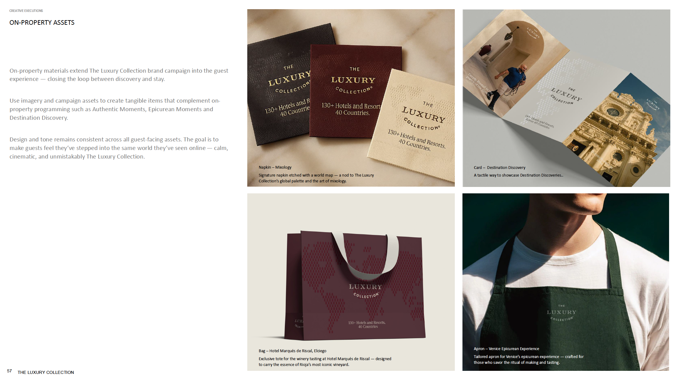For decades, The Luxury Collection was beloved for its 130+ extraordinary, one-of-a-kind hotels and resorts across 40 countries—each impeccably curated and deeply rooted in culture, heritage, and place. Iconic properties like The Gritti Palace or Hotel Imperial were admired individually, yet the global brand behind them remained largely invisible.