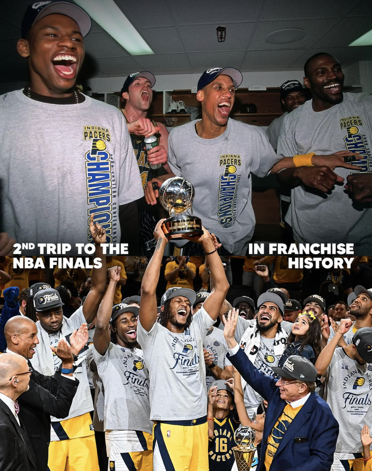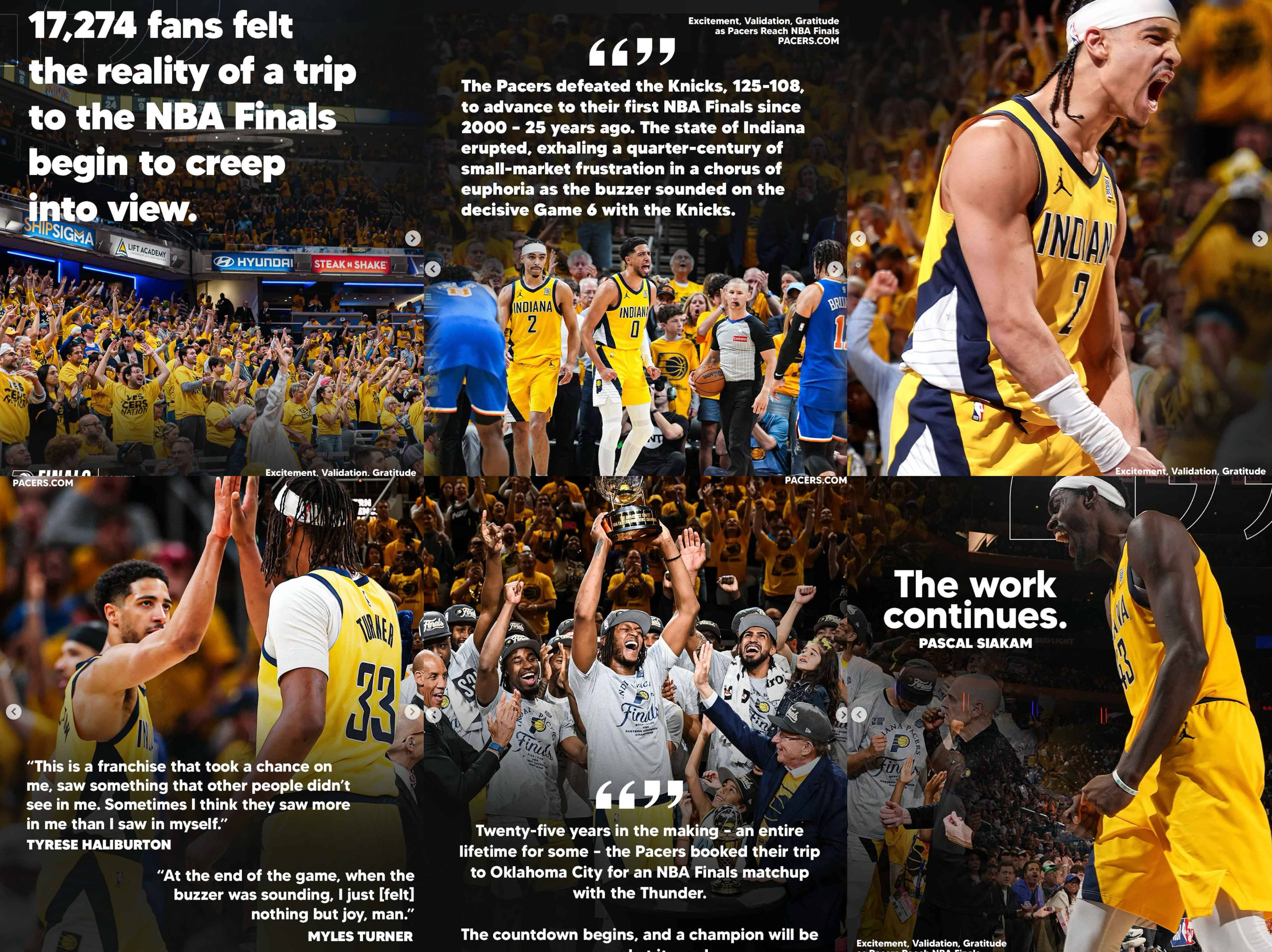 Lastly, this playoff run carried historic weight. It marked just the second Finals appearance in franchise history and showed incredible similarities to our 2000 run, including defeating the same opponent in the same number of games in the Eastern Conference Finals. We creatively activated those parallels through graphics and video that blended archival footage with current highlights, featuring Reggie Miller and connecting generations of fans through shared moments and memories.