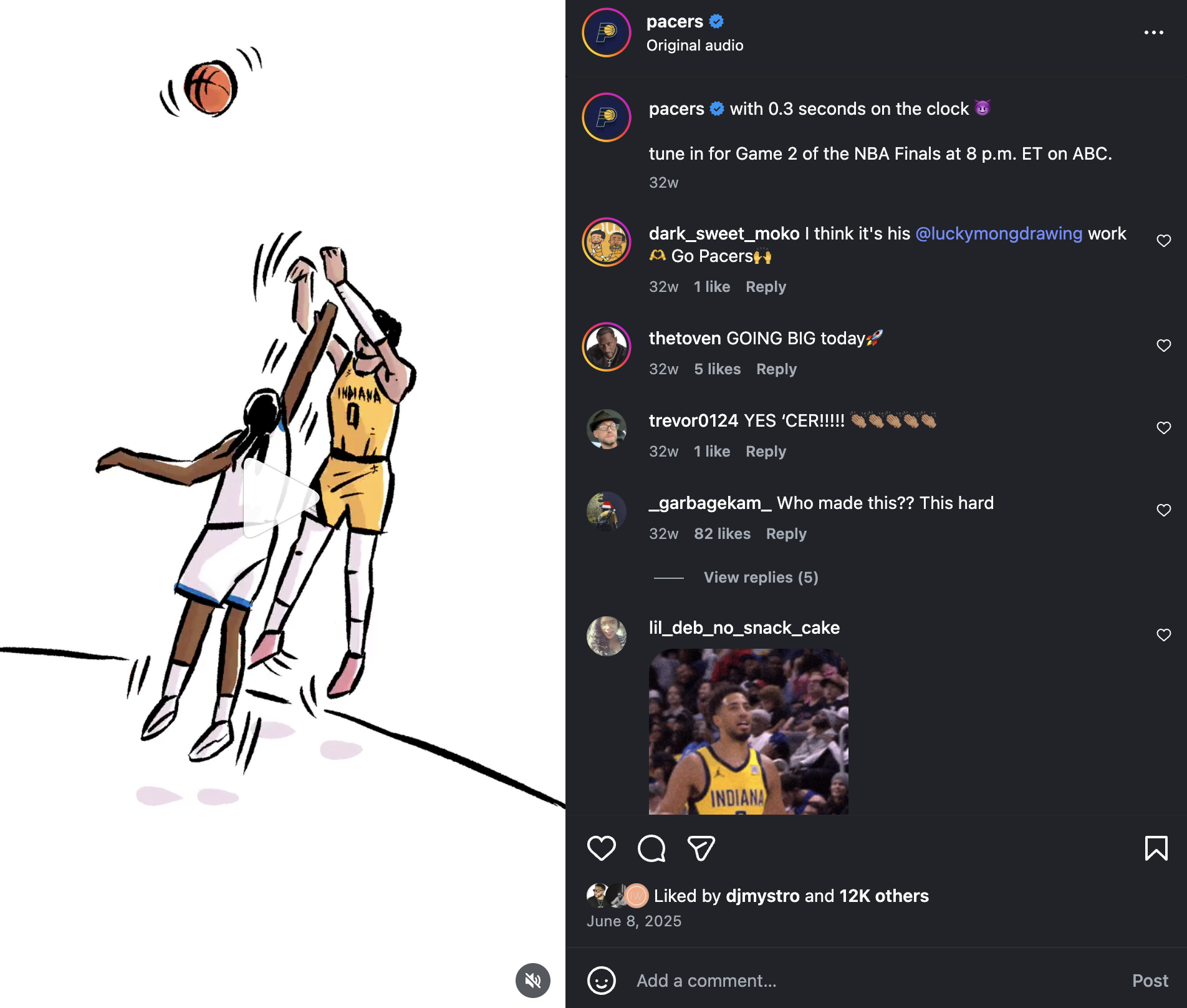 We reinforced belief with nightly manifesto-style posts once we reached the epitome of the posteason, the NBA Finals, that acted as rallying cries, broke down iconic plays through alternate angles (think “every angle of Tyrese Haliburton’s game-winning shot) and stop motion and used custom illustrations and photo manipulations to playfully reference opponents we defeated. The message was consistent: this team wasn’t an underdog—it was simply overlooked.
