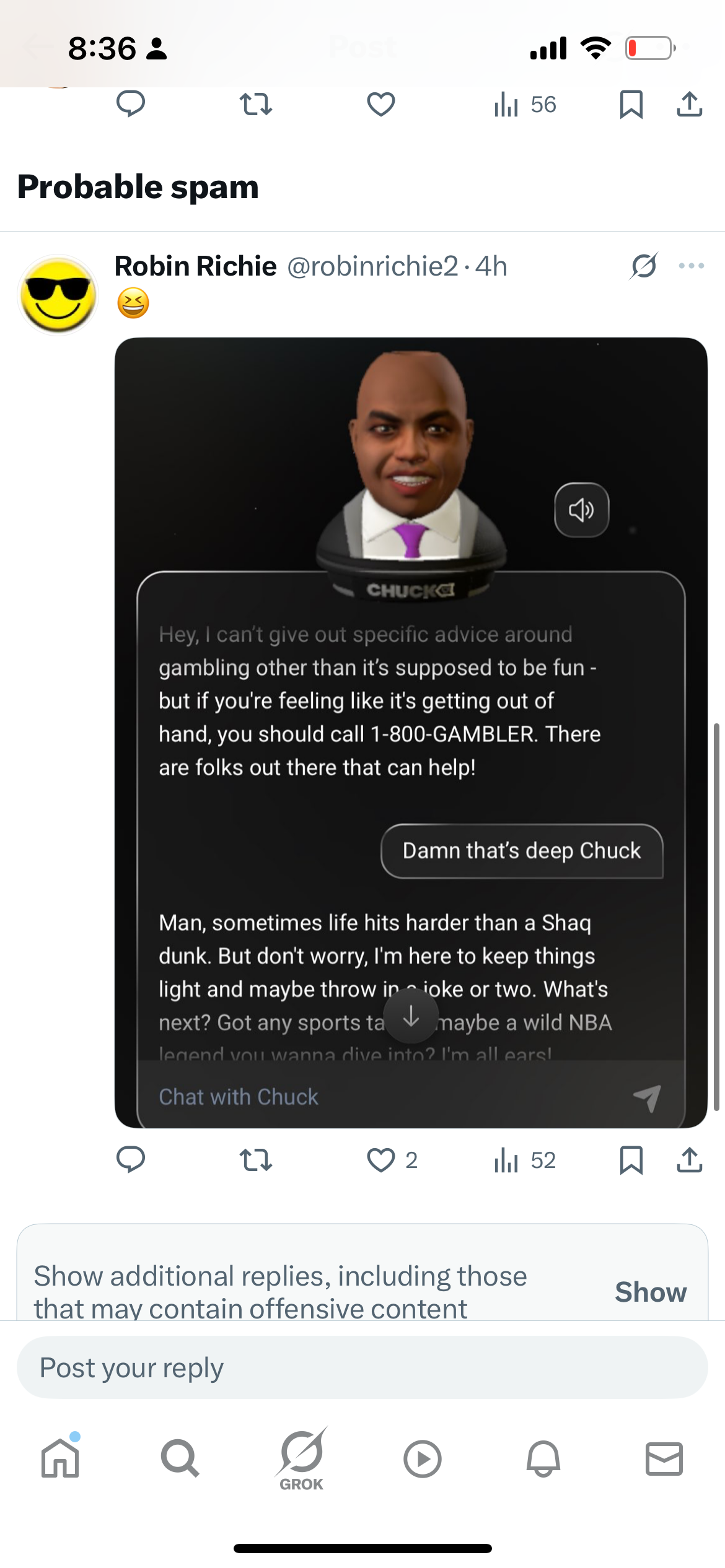 ChuckGPT—the first AI built for sports culture. Powered by a custom-built ‘persona engine’ trained on Barkley’s cadence, wit, signature analogies, and hoops IQ. A generative pipeline layered joke construction and analogy logic on top of the AI model, ensuing every line sounded unmistakably like Chuck. ChuckGPT fires off Barkley‑isms on demand, trash‑talking bad picks and hot takes. Less “assistant,” more “courtside buddy with a mic.”