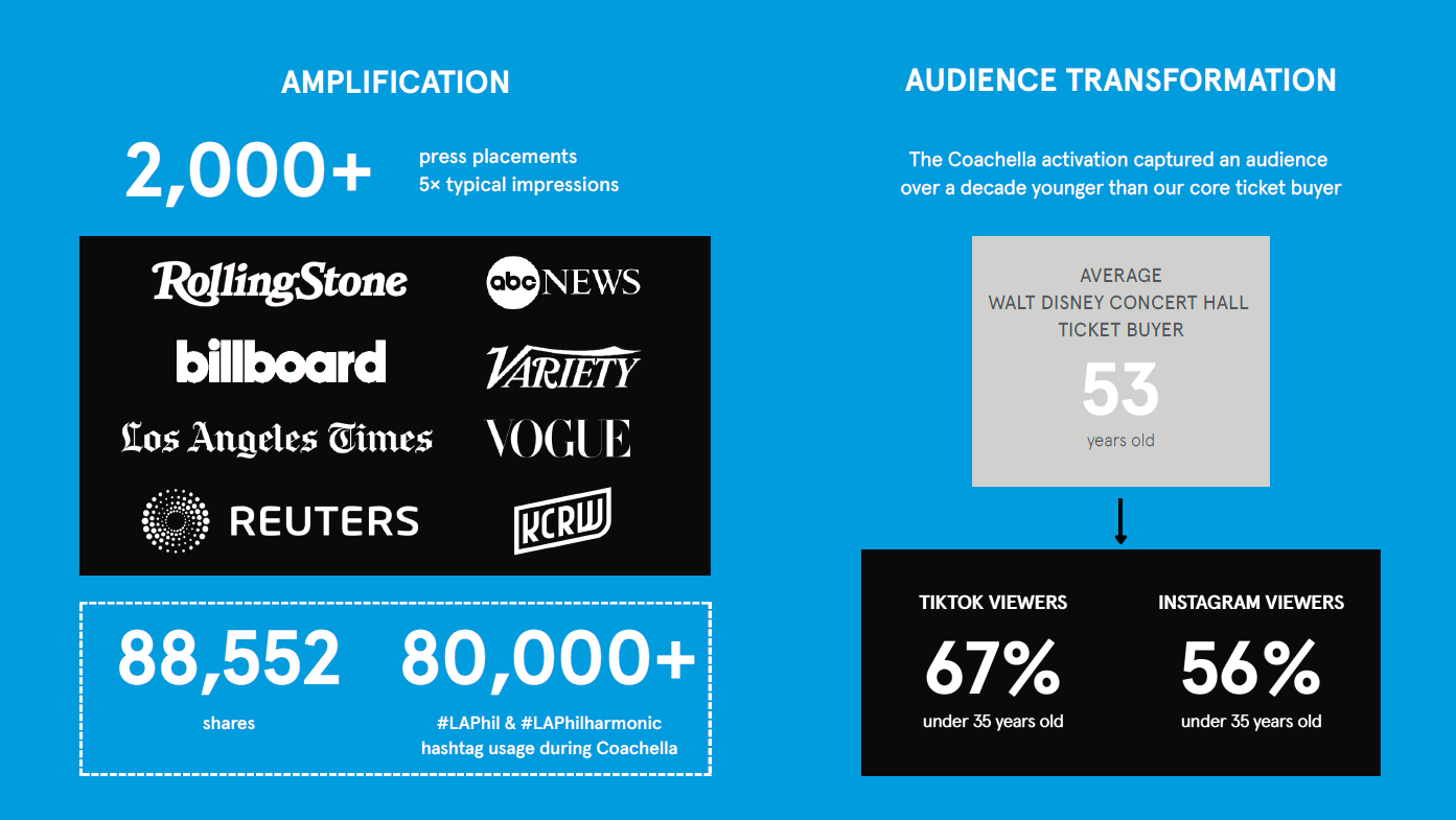 In 2025, the Los Angeles Philharmonic became the first major orchestra to perform its own set at Coachella - not as backup, but as a headlining act. As a nonprofit reinvesting all revenue into programming, education, and musicians, we had no budget for paid promotion. Every view, follow, and share would have to be earned.