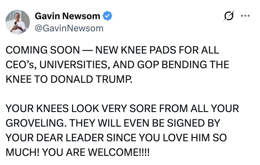 In 2025, Newsom had the largest social media growth of any Democrat. @GavinNewsom generated more than five million new followers and millions of impressions across all platforms. On TikTok alone, he exploded from 500,000 followers in March to 2.9 million by the end of the year.