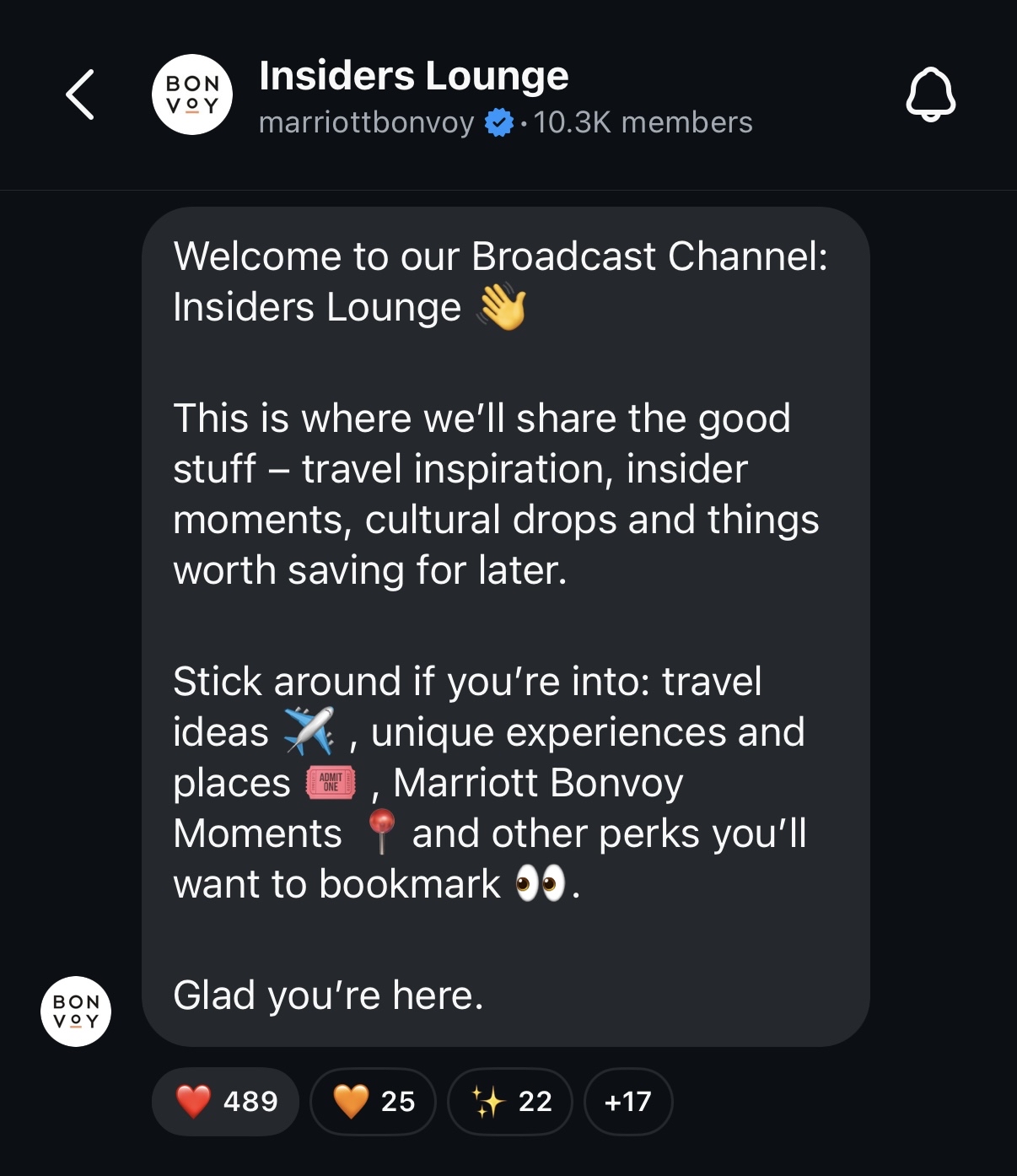 Marriott Bonvoy’s Instagram Broadcast Channel was built as an extension of how members already engage with the brand, on mobile, in the moment, and driven by curiosity about what’s next.