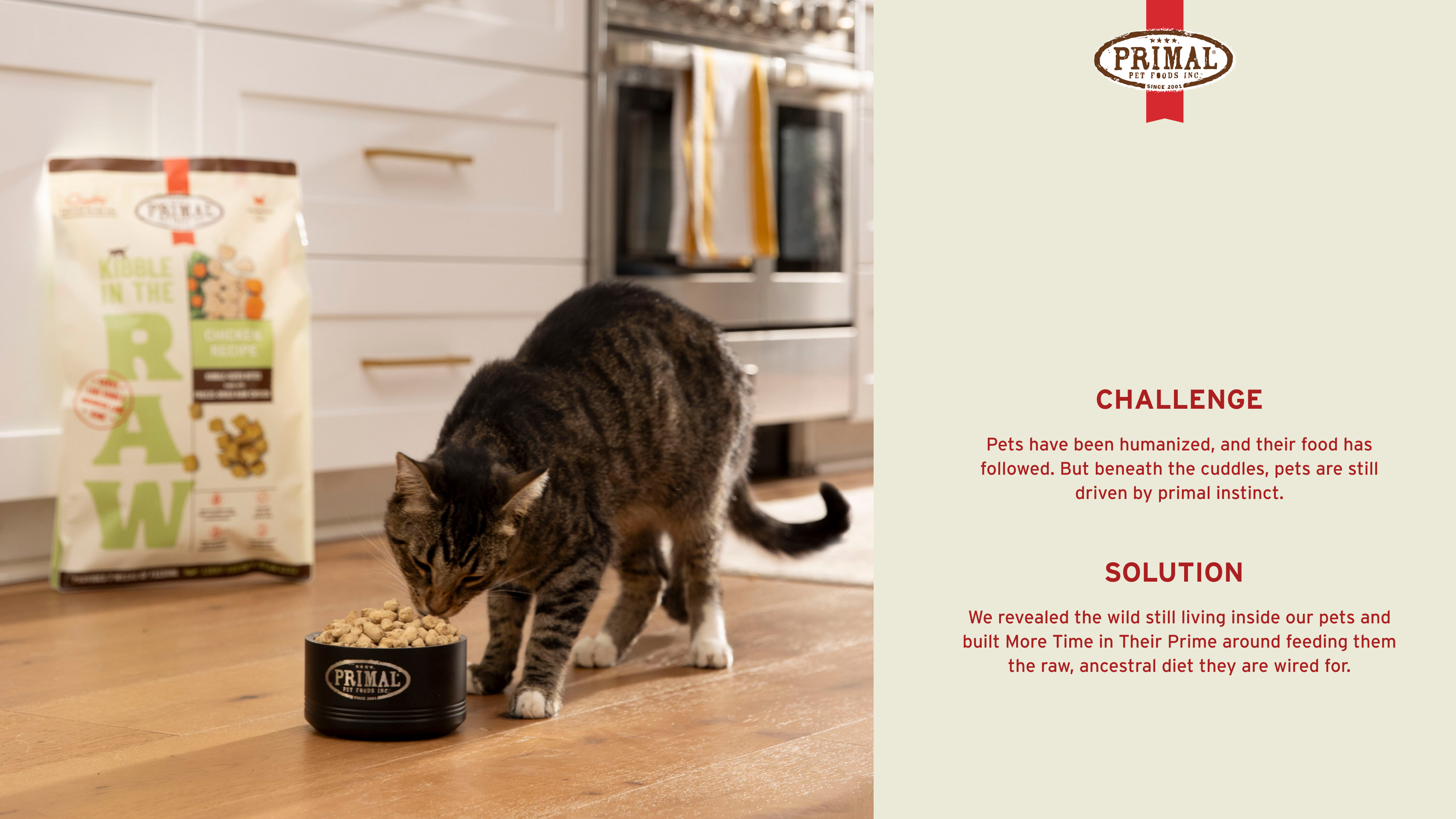 In a category full of claims and confusion, the campaign helped Primal take a simple, unmistakable stand: pets thrive on the diet they were built for—and that’s how you get more time in their prime.