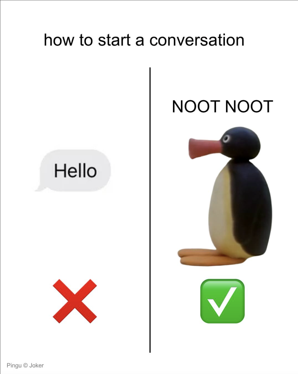 Qualitatively, we amplified Pingu’s signature “noot noot” as a mainstream cultural phenomenon, appearing across social media as a recognizable signal of the character, a shared inside joke among fans, and a vocal stim among the chronically online.