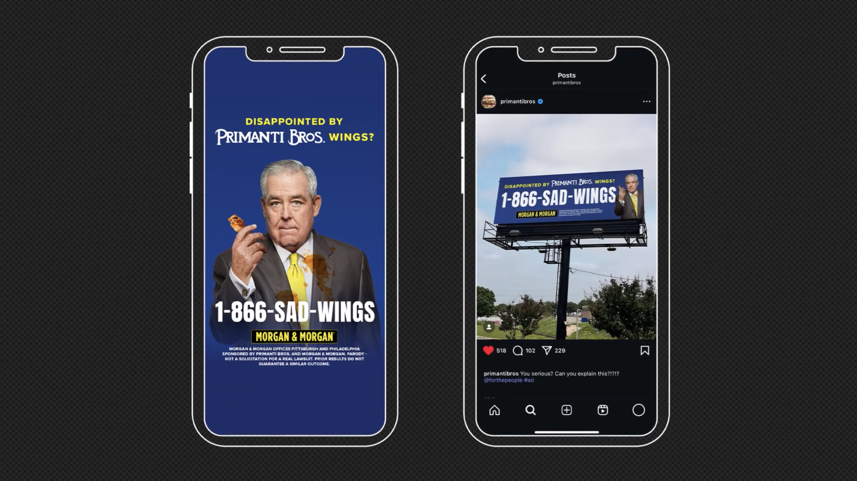 The biggest twist? We teamed up with real-life injury attorneys Morgan & Morgan to “co-sign” the message with outdoor boards in their signature look. Their board kickstarted our campaign, and their partnership contributed to the overall success.