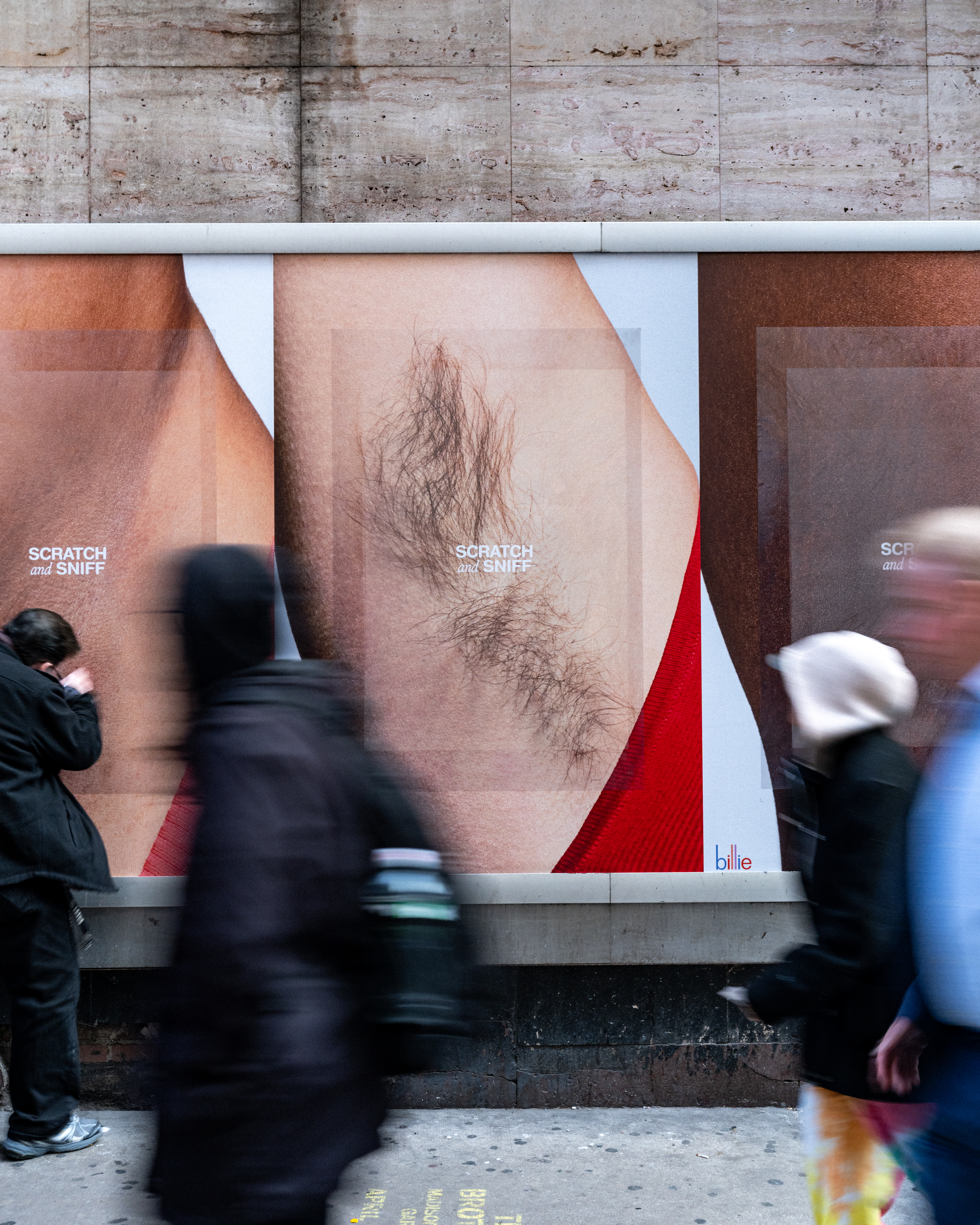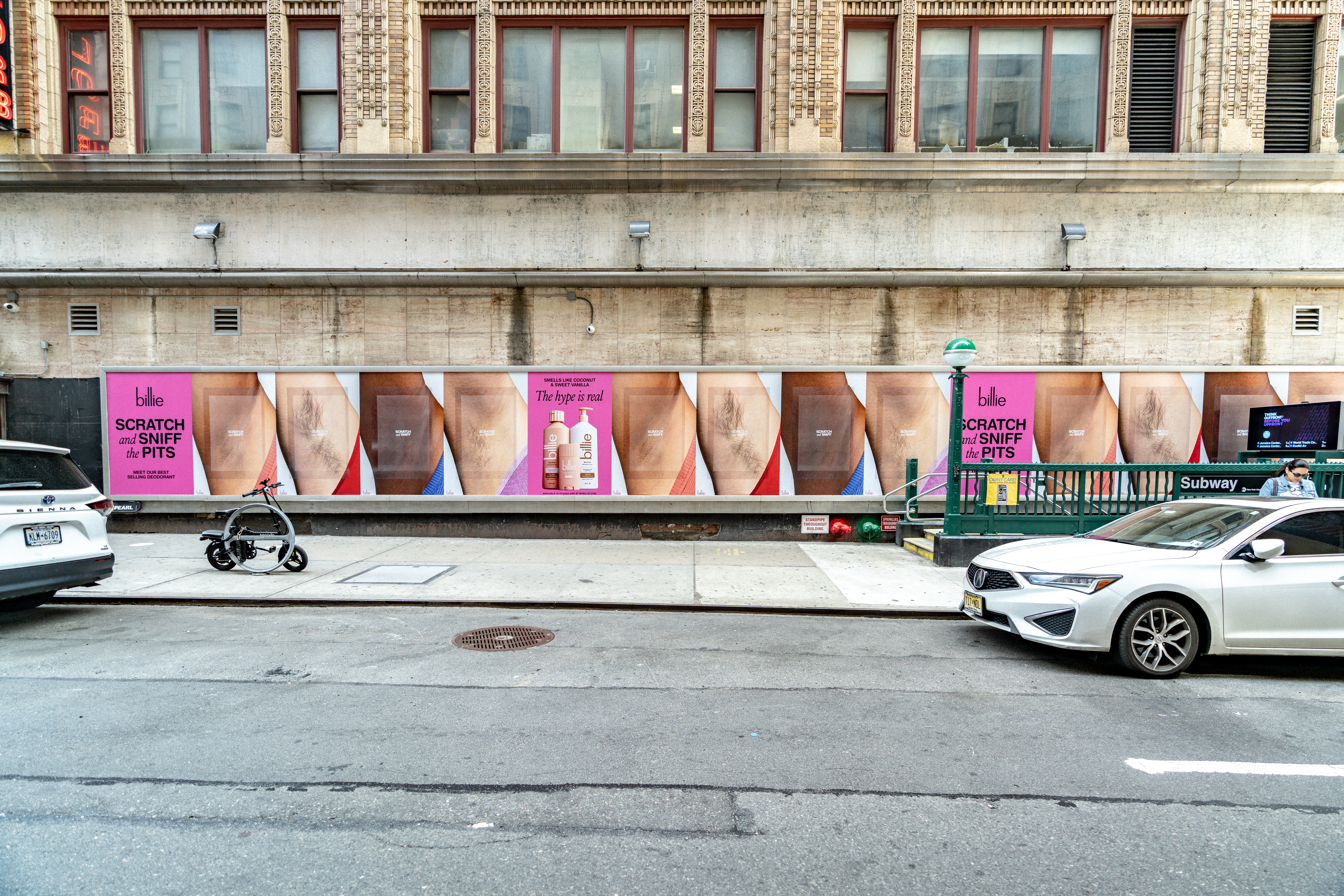 In April 2025, Billie set out to launch its new bodycare lineup in a way that would make its scent unmissable and generate broad awareness and cultural conversation around the new collection. In a category relying on abstract language to describe fragrance, Billie’s objective was to bring scent to life in a way consumers could instantly understand, engage with, and remember. To do so, the brand invited New Yorkers to literally smell its new coconut vanilla bodycare scent through scratch-and-sniff armpit billboards in high-traffic locations.