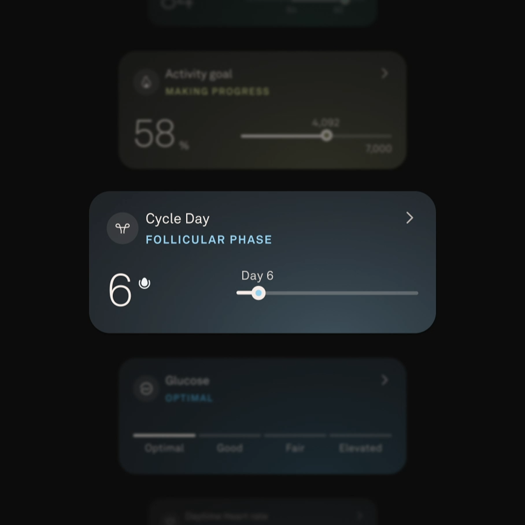 A unified, semantic color system enables immediate interpretation across all views. Color adapts to personalized baselines, signaling how the body is responding rather than simply displaying raw values. This consistency allows members to scan, compare, and recognize patterns across metrics without relearning visual cues.