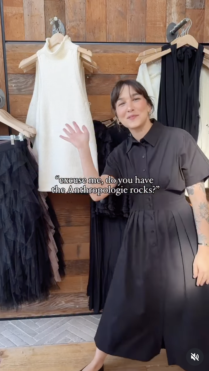 Light-Touch Brand Confirmation: Only after creator momentum was established did Anthropologie post from its own channels. First, we invited Phoebe to her local NJ store to "show" her boyfriend our in-store Rock display...live, in person! Then, we created just a few owned videos: an in-store collection video, a TikTok giveaway, and as the holiday season continued a tongue-in-cheek “Rock Advent Calendar.”
