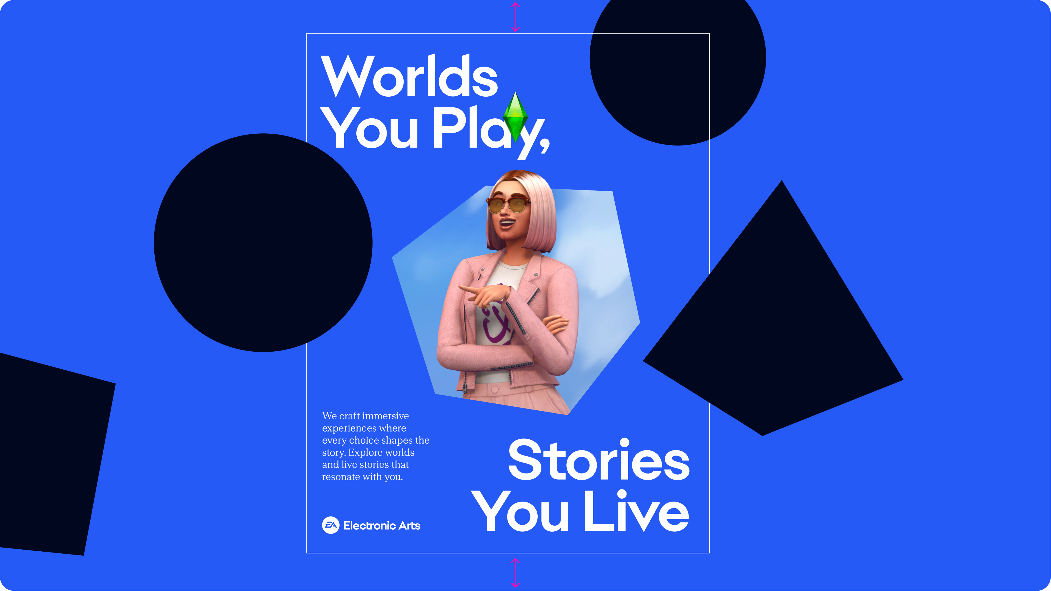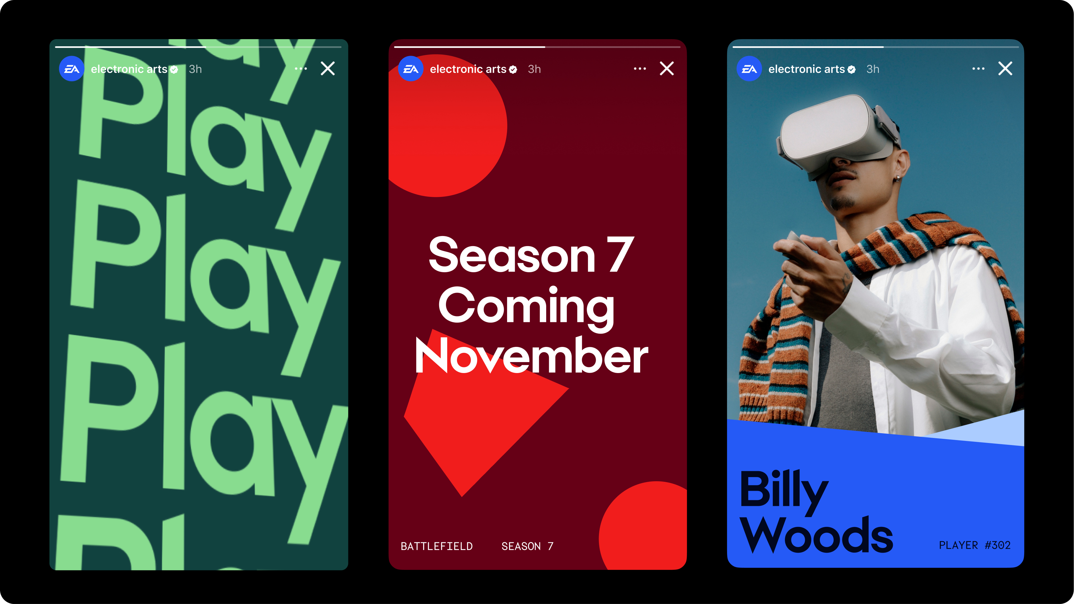 Much like gaming itself, the EA brand needed to feel alive—always in motion, even when standing still. We built a visual language charged with energy and intent, where every element—typography, layout, and color—feels dynamic, responsive, and ready to move.