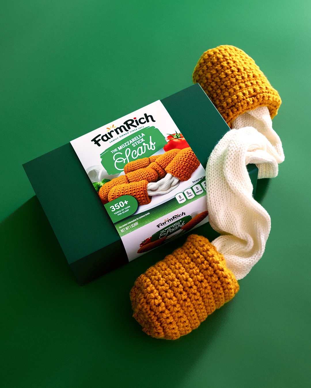 In the fall, consumers seek comfort in two primary forms: the food they eat and the clothes they wear. That insight sparked The Mozzarella Stick Scarf—a literal embodiment of comfort food. We set out to turn a beloved snack into a high-fashion, sensory accessory that was equal parts wonderfully absurd and perfectly suited for peak autumn.