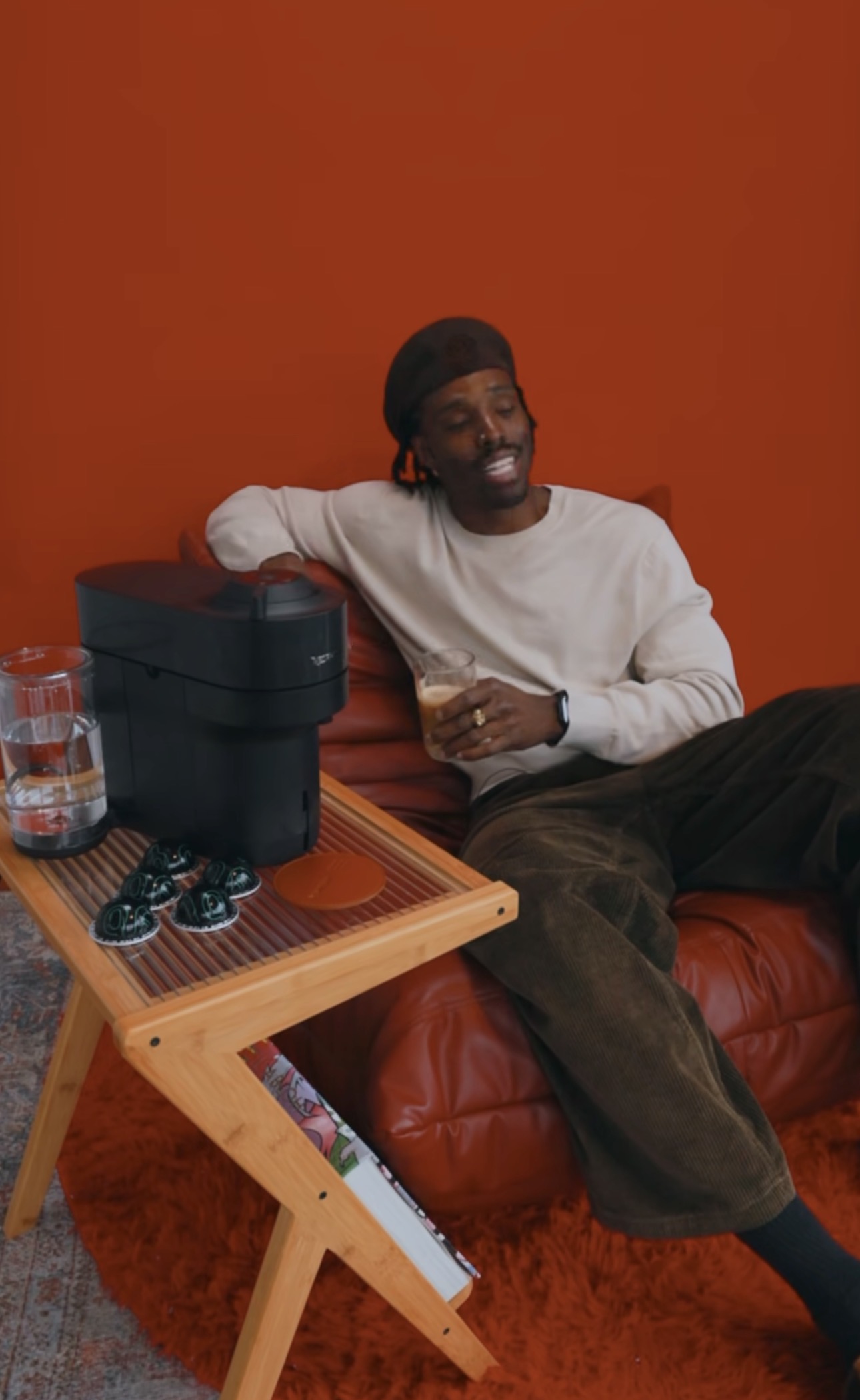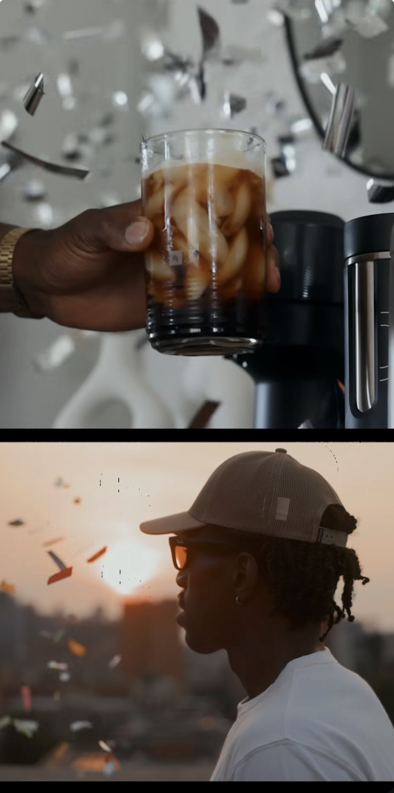 Karl built the narrative around contrast: a quiet, intimate morning moment followed by a sudden burst of light, movement, and atmosphere once he takes the first sip. This shift symbolizes the physical and emotional jolt of flavor, expressed through visuals reminiscent of a live Weeknd concert — dynamic lighting, confetti-like textures, and high-energy motion.