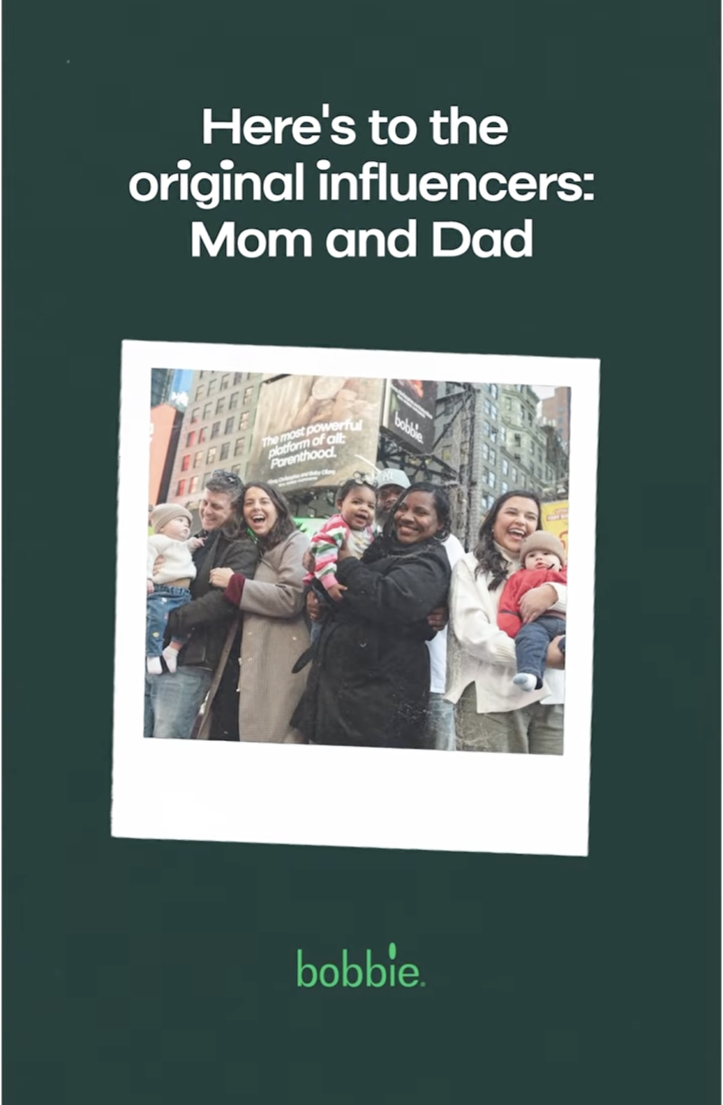 By showcasing unedited family photos in Times Square, Bobbie deepened its differentiation in a category often driven by idealized imagery and transactional messaging. The billboard sparked organic conversation and emotional engagement precisely because of its simplicity.