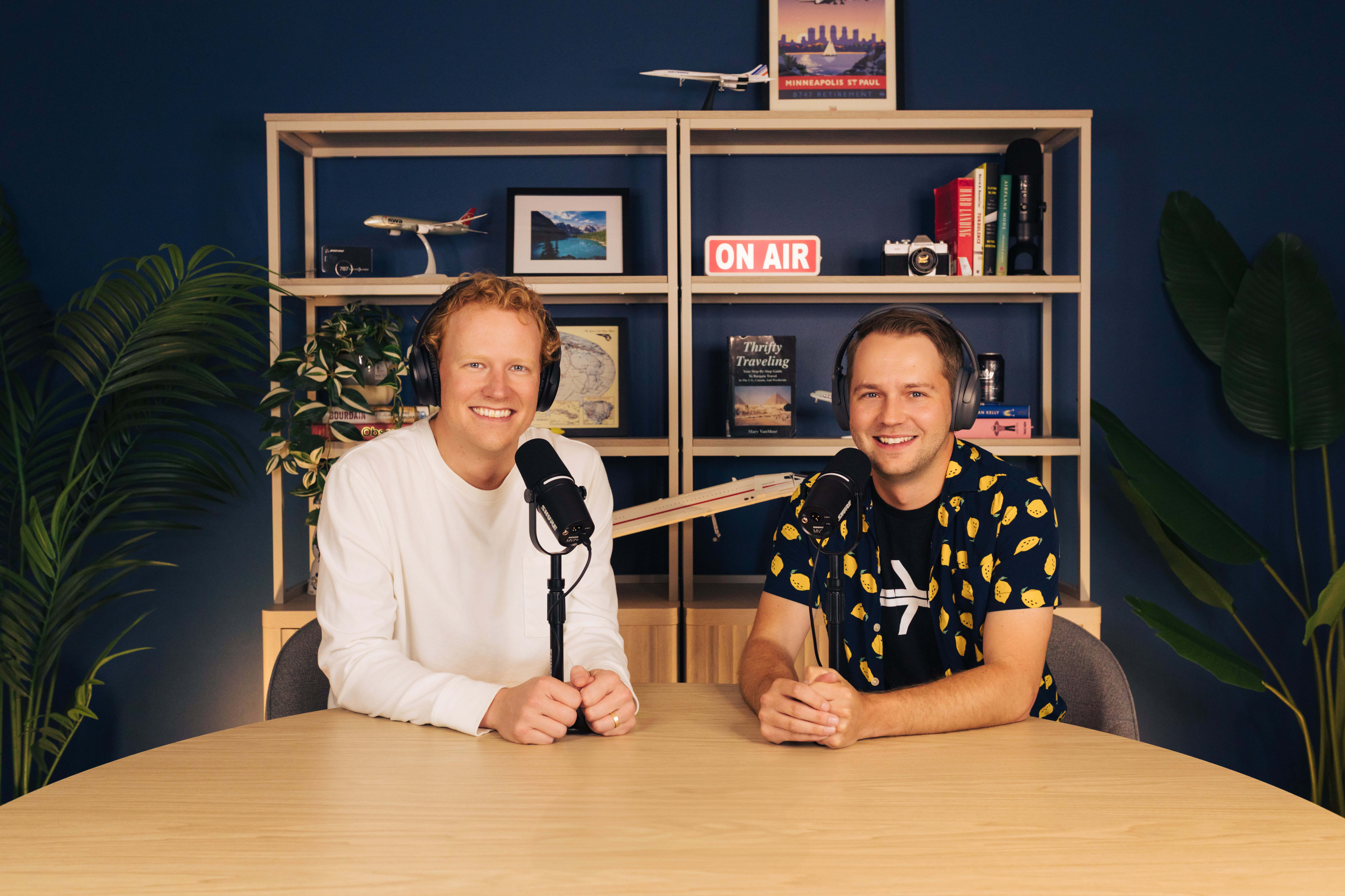 Launching in the 2025–2026 climate typically requires a celebrity host or a massive ad spend, but we had neither. We started in March 2025 in a dark coworking conference room with a sheet tacked to the wall and some basic microphones. Because Gunnar and Kyle are full-time flight analysts, writers, and editors, the podcast started off as just a fun "side project".