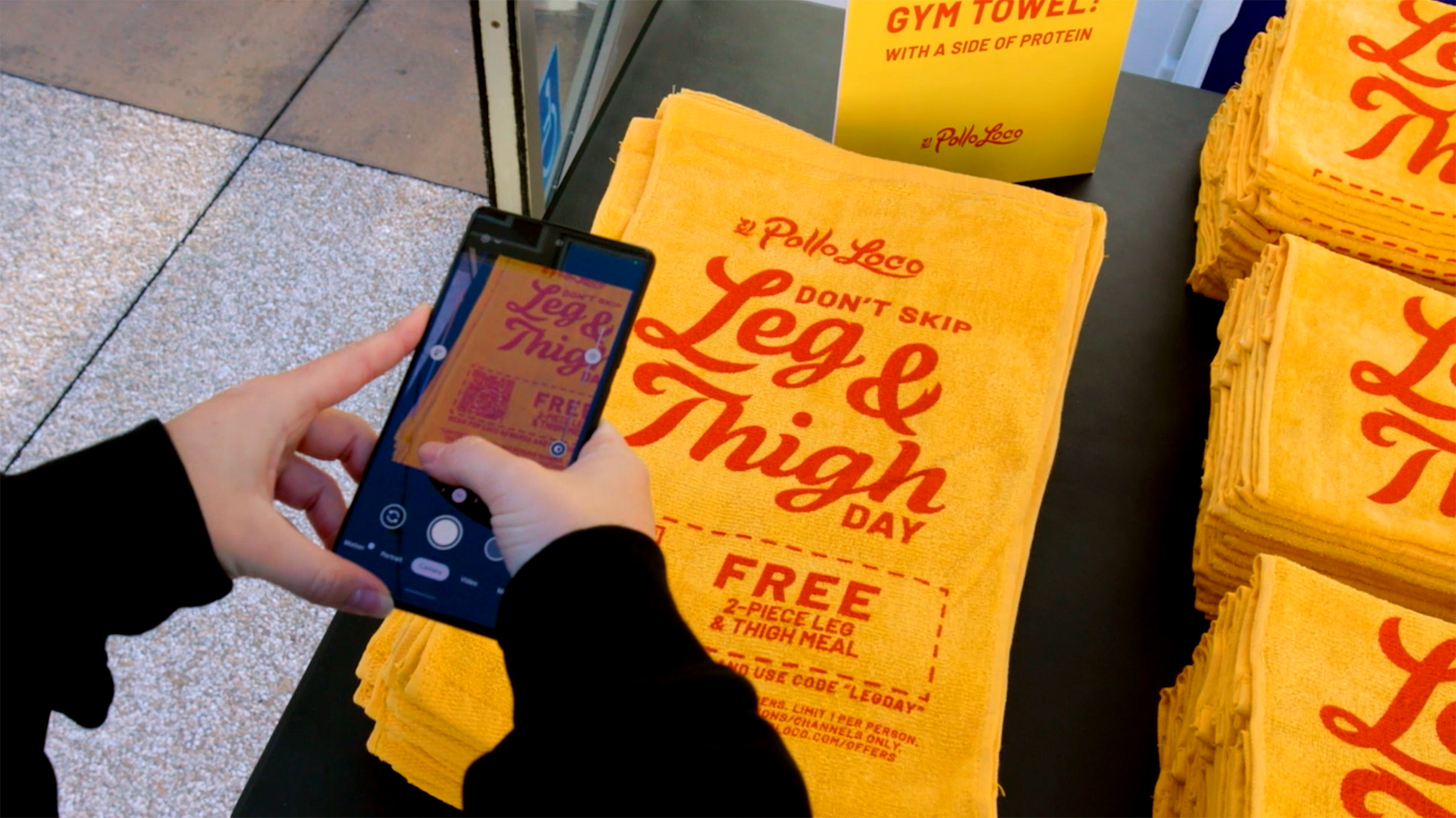 El Pollo Loco partnered with gyms to provide the first gym towel coupon with a scannable QR code, redeemable for a two-piece meal, and making Leg & Thigh Day something to look forward to.