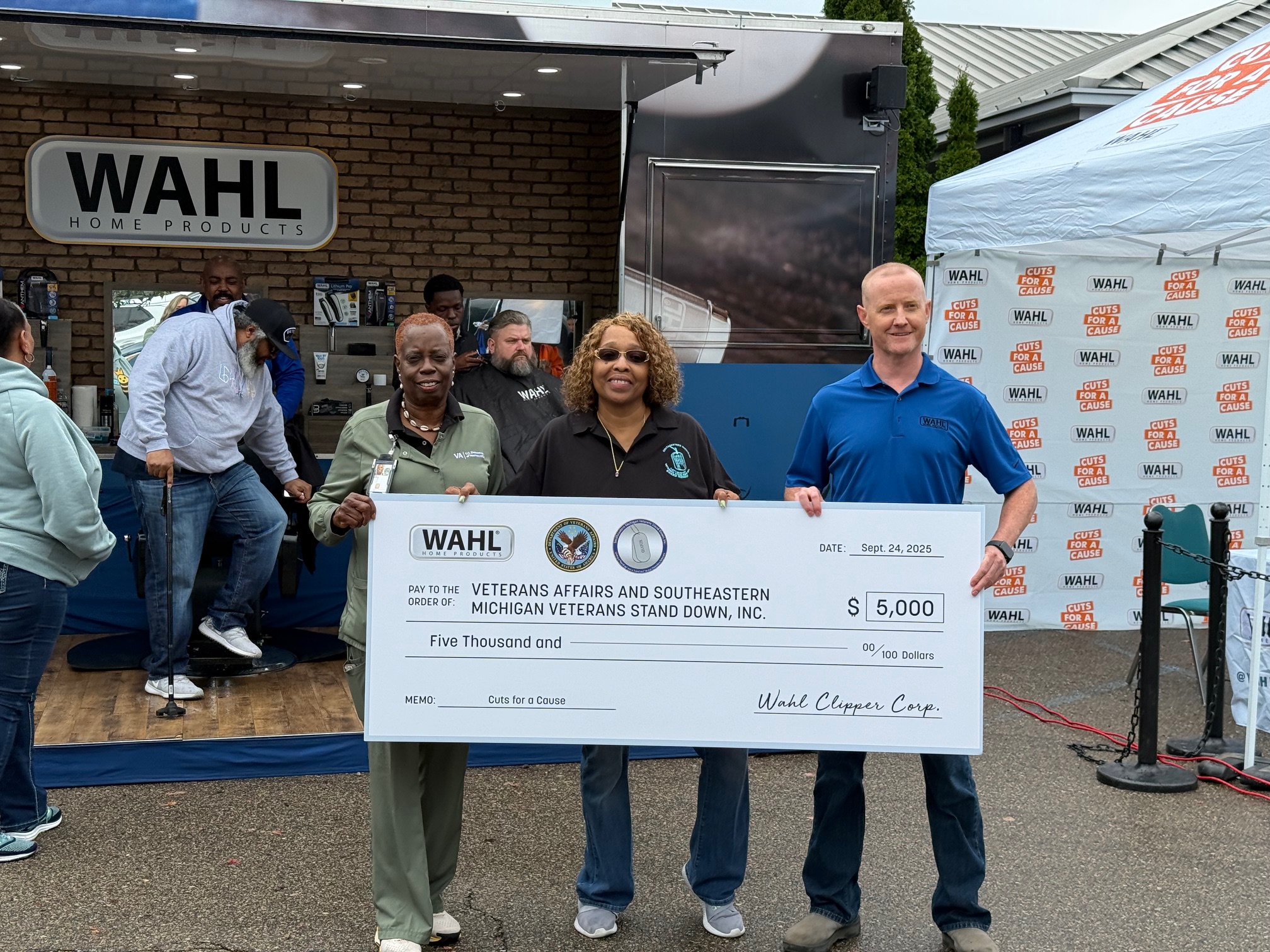 On Wednesday, Sept. 24, 2025, the Cuts for a Cause initiative partnered with the Southeastern Michigan Veterans Stand Down Event, where hundreds of homeless and at-risk veterans gathered for amenities such as food, clothing, health screenings and counseling services. Wahl contributed by parking its mobile barbershop at the event, and for every FREE haircut or beard trim donated $100 to support the charity.