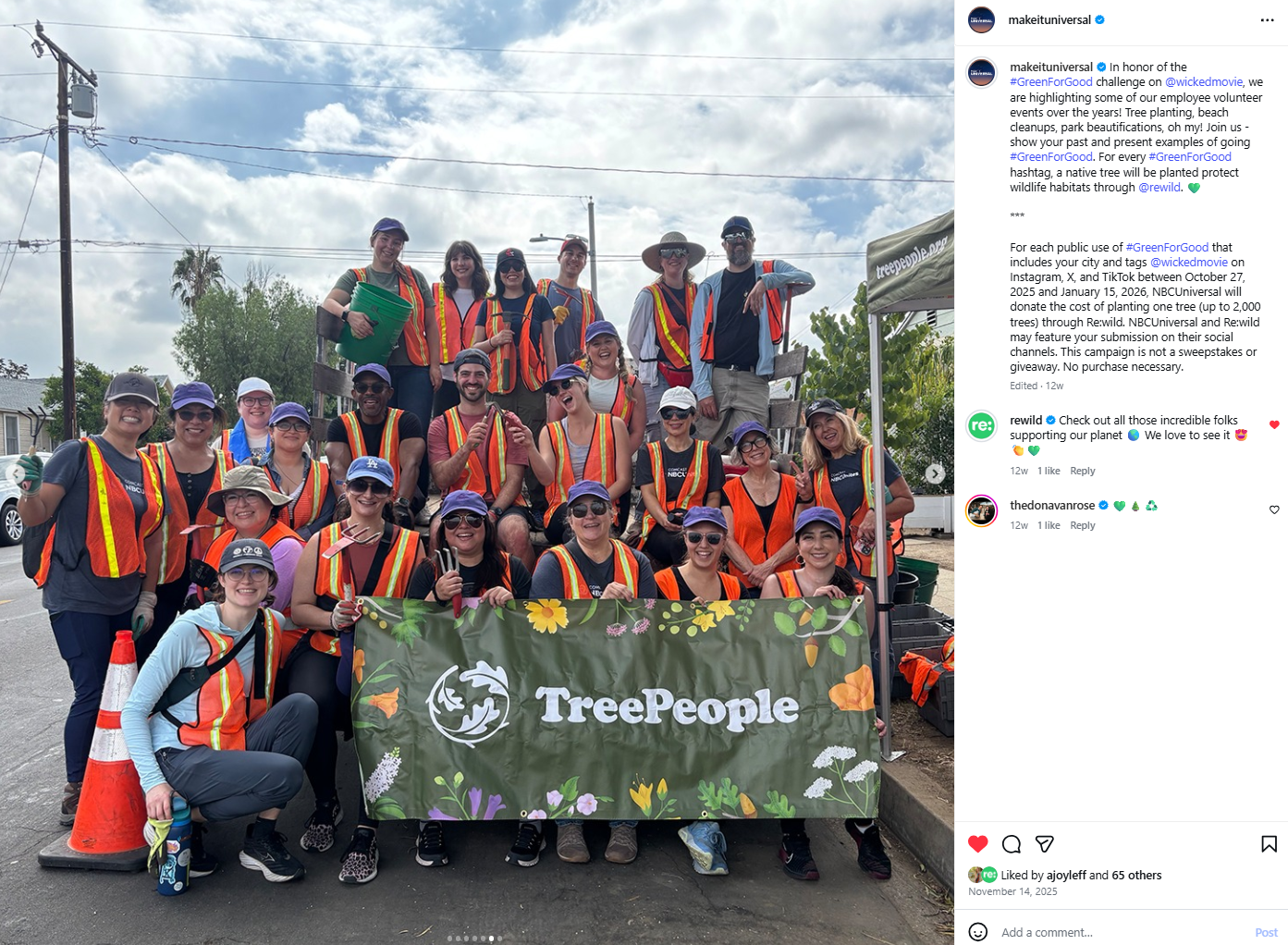 UGC challenge, encouraging fans to show their friends and families how they’re being Green for Good. In recognition of this challenge, NBCUniversal will be planting approximately 20,000 native trees through Re:wild.