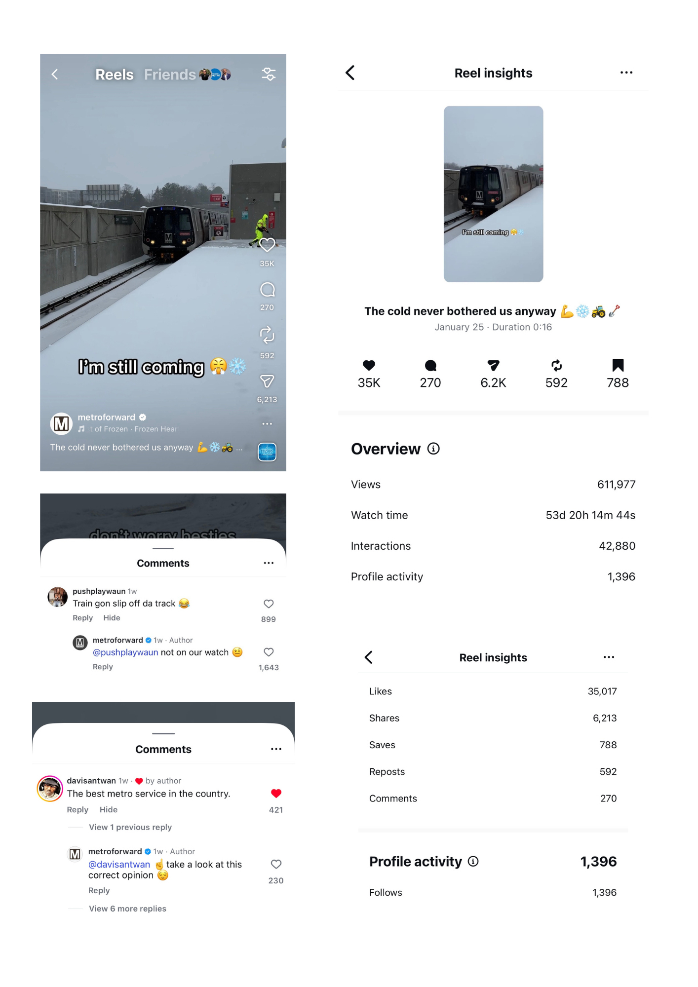 Just as important as the content itself is the conversation that follows. The social team actively engages with riders in the comment section, responding with wit, empathy, and personality while answering questions and clarifying service details. Treating social media as a two-way dialogue transforms routine updates into moments of connection and makes the brand feel approachable and responsive.